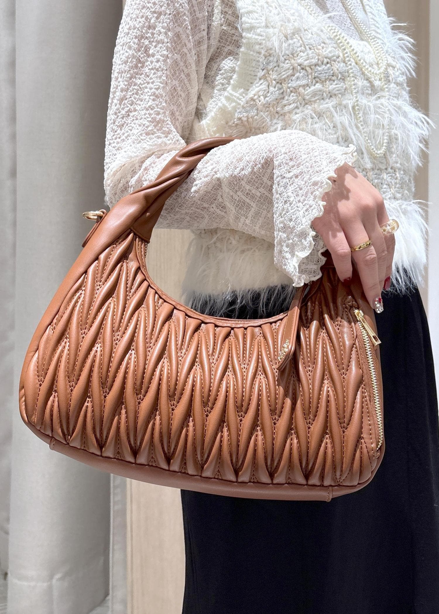 VIS【2WAY】ねじりハンドルキルティングバッグブラウン / F¥7,909レビューショルダーが付いており、2wayで使うことができます。
