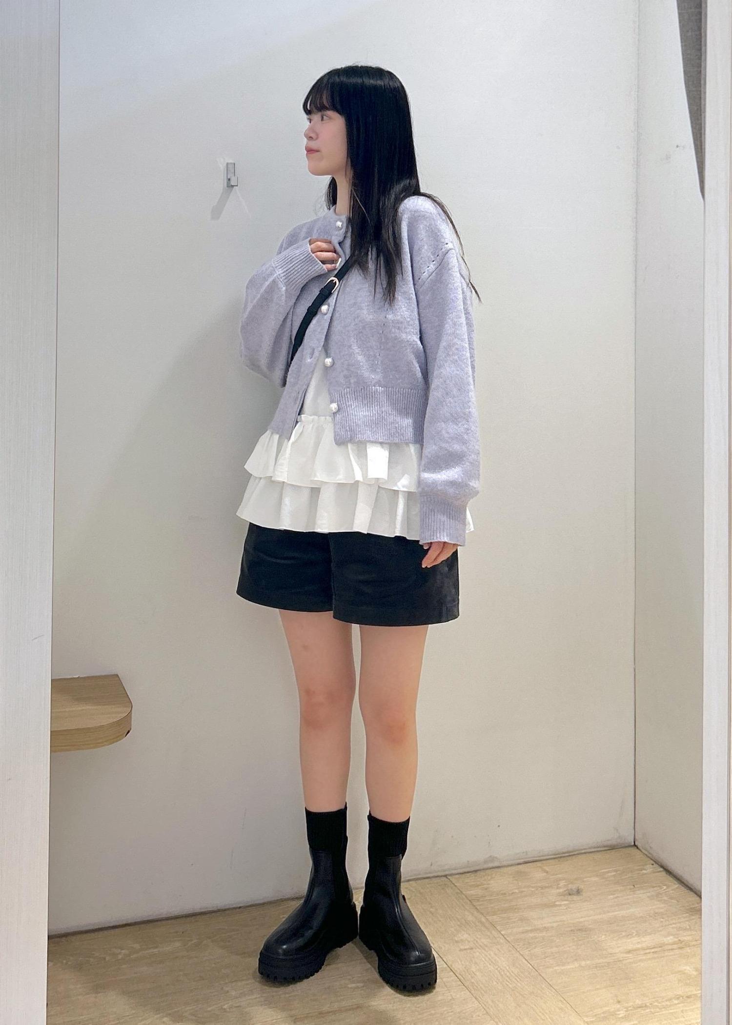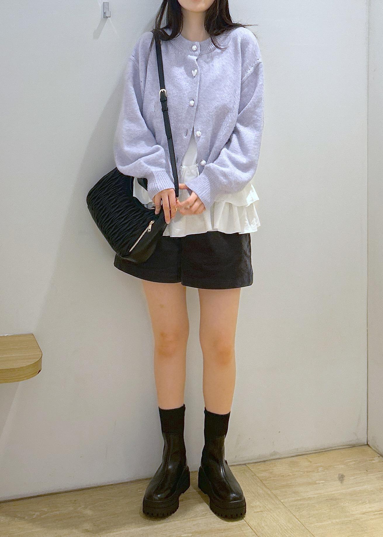 VISハートアソートパール釦ラメミックスカーディガン/イージーケア・一部WEB限定カラーパープル系 / F¥5,489レビュー上から2番目の釦がハートになっていてとってもキュートです♡♡ラメも入っているので着るだけでガーリーな印象に!丈感は腰の辺り迄で短めです。1枚でも着られますが、ラメやニットの質感的に、敏感肌の方は首周りが少しチクッとするかもしれないのでレイヤードスタイルがオススメです☺︎