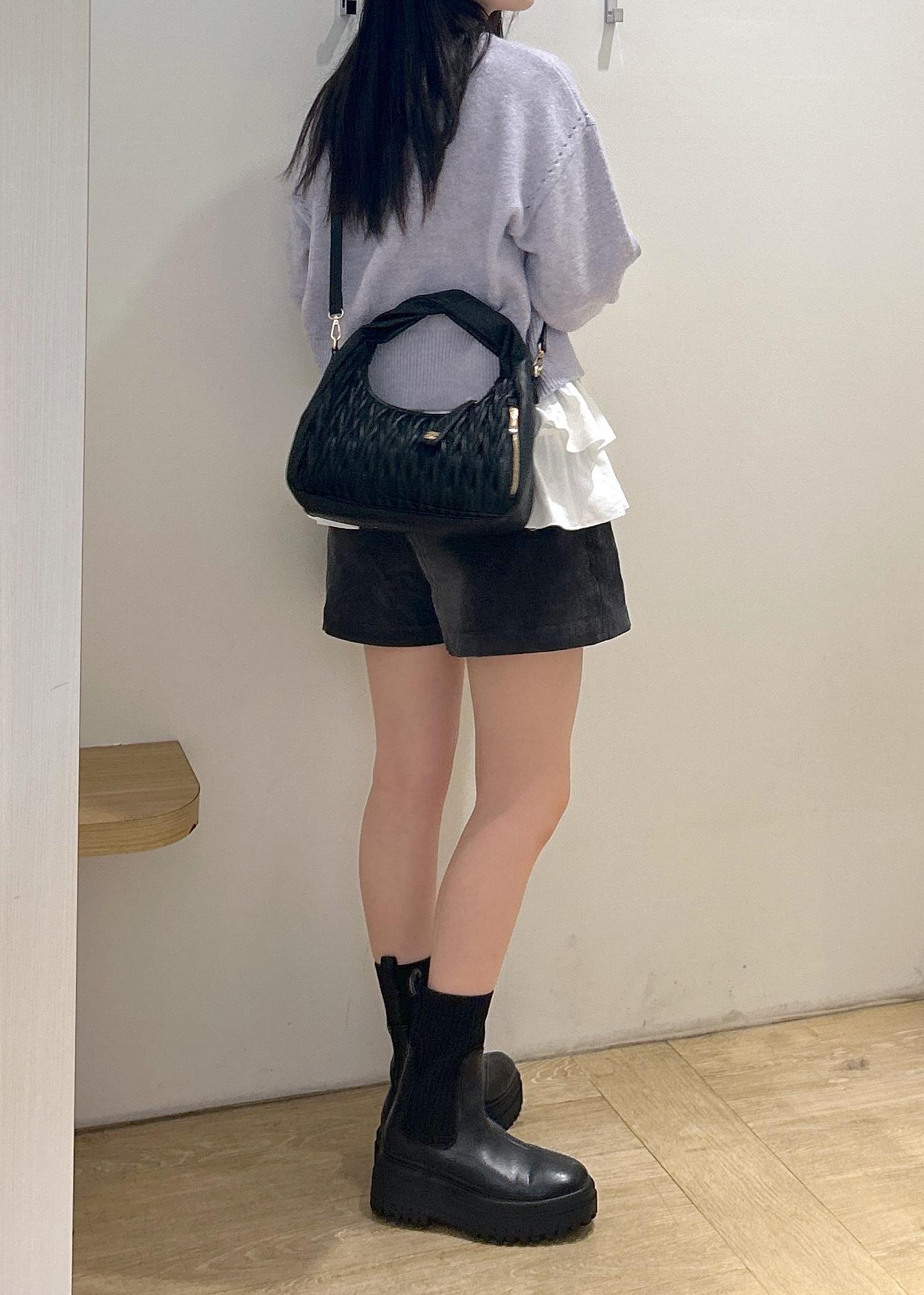 VIS【2WAY】ねじりハンドルキルティングバッグブラック / F¥7,909レビュー小ぶりに見えて意外と容量があり、500mLのペットボトルや長財布も入ります。柔らかいキルティングとねじりハンドルが女性らしくてとても可愛いです!