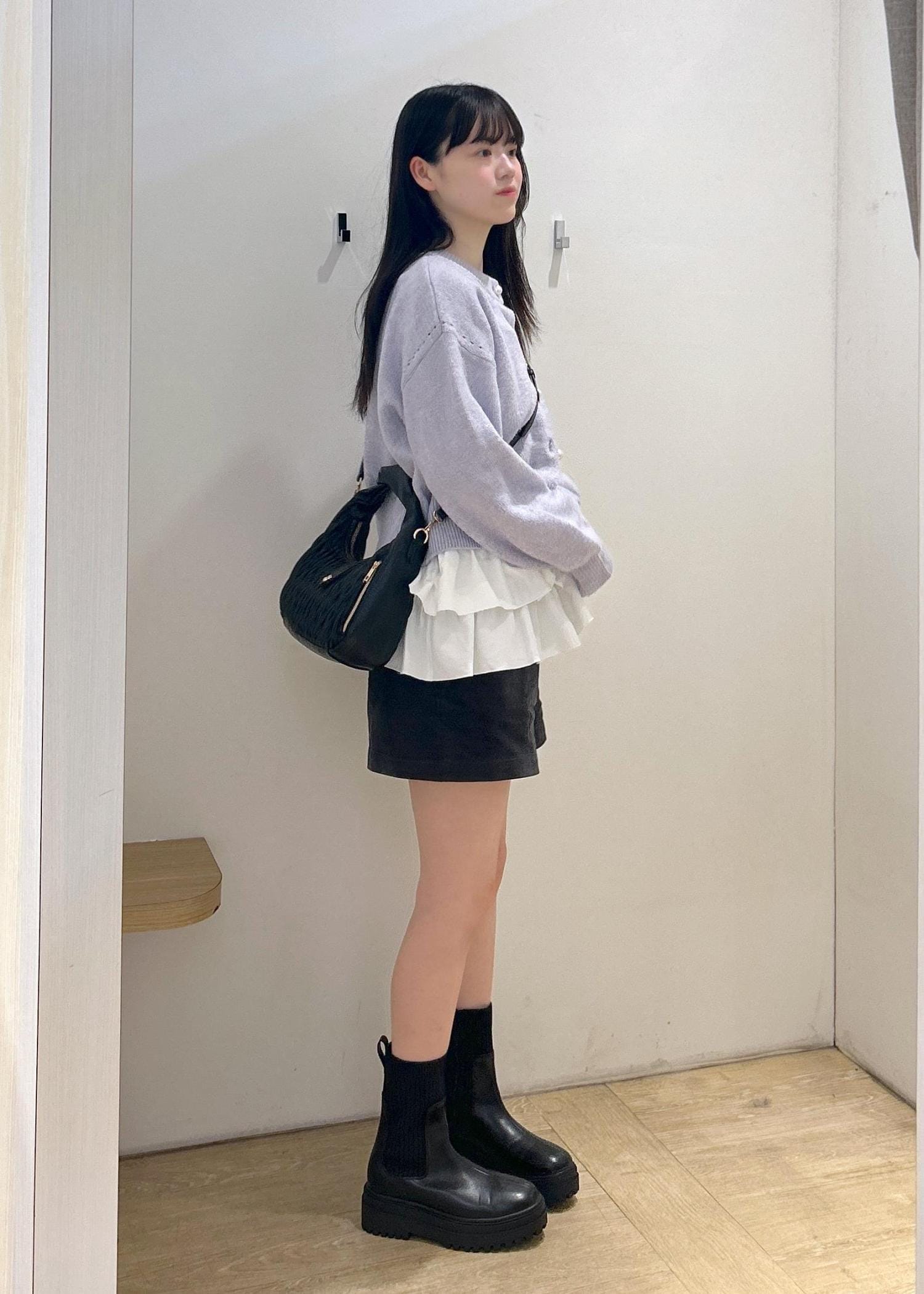 ミニ丈のボトムと相性バッチリですがロング丈のボトムやワンピと合わせても足首がほっそり見えるので幅広いファッションが楽しめます。