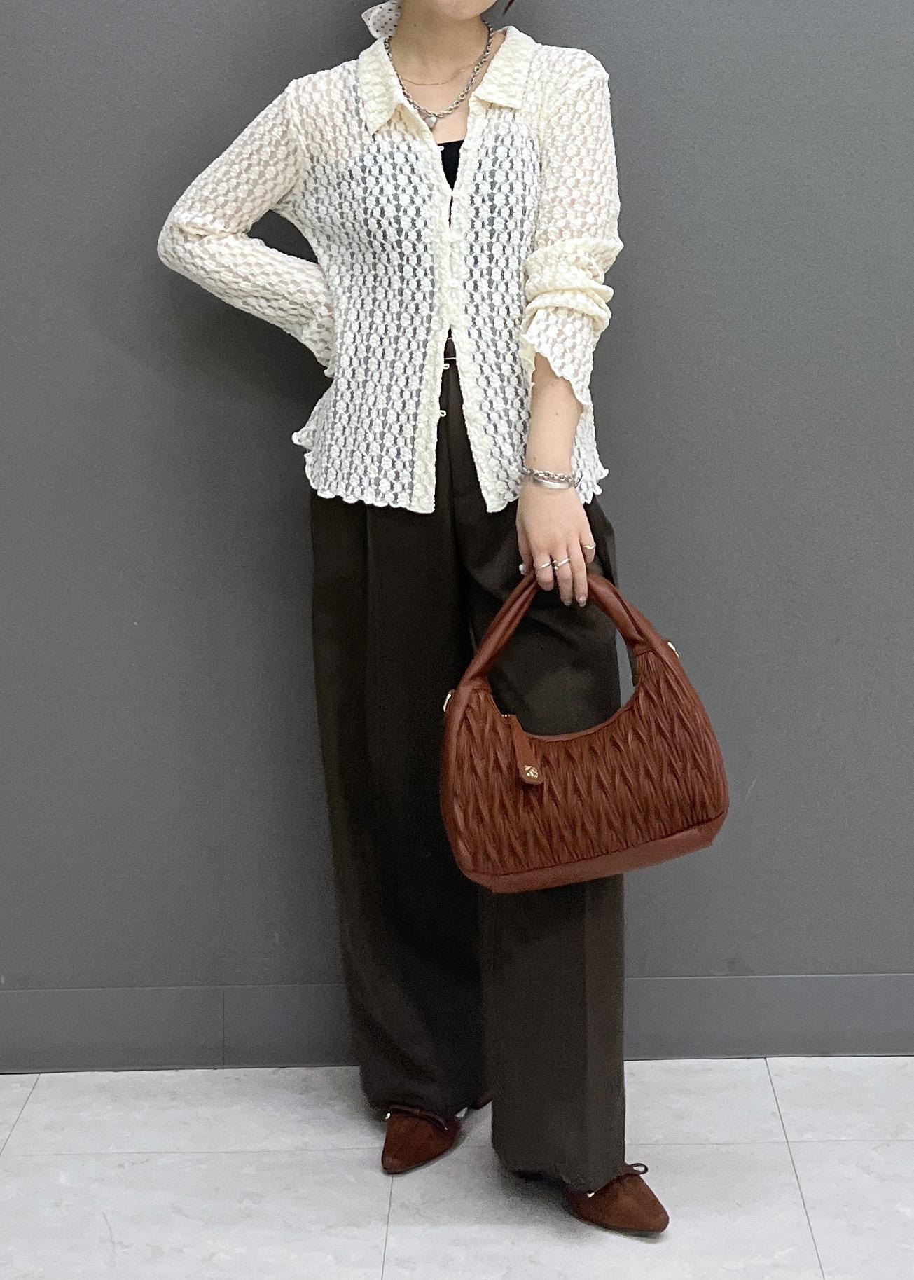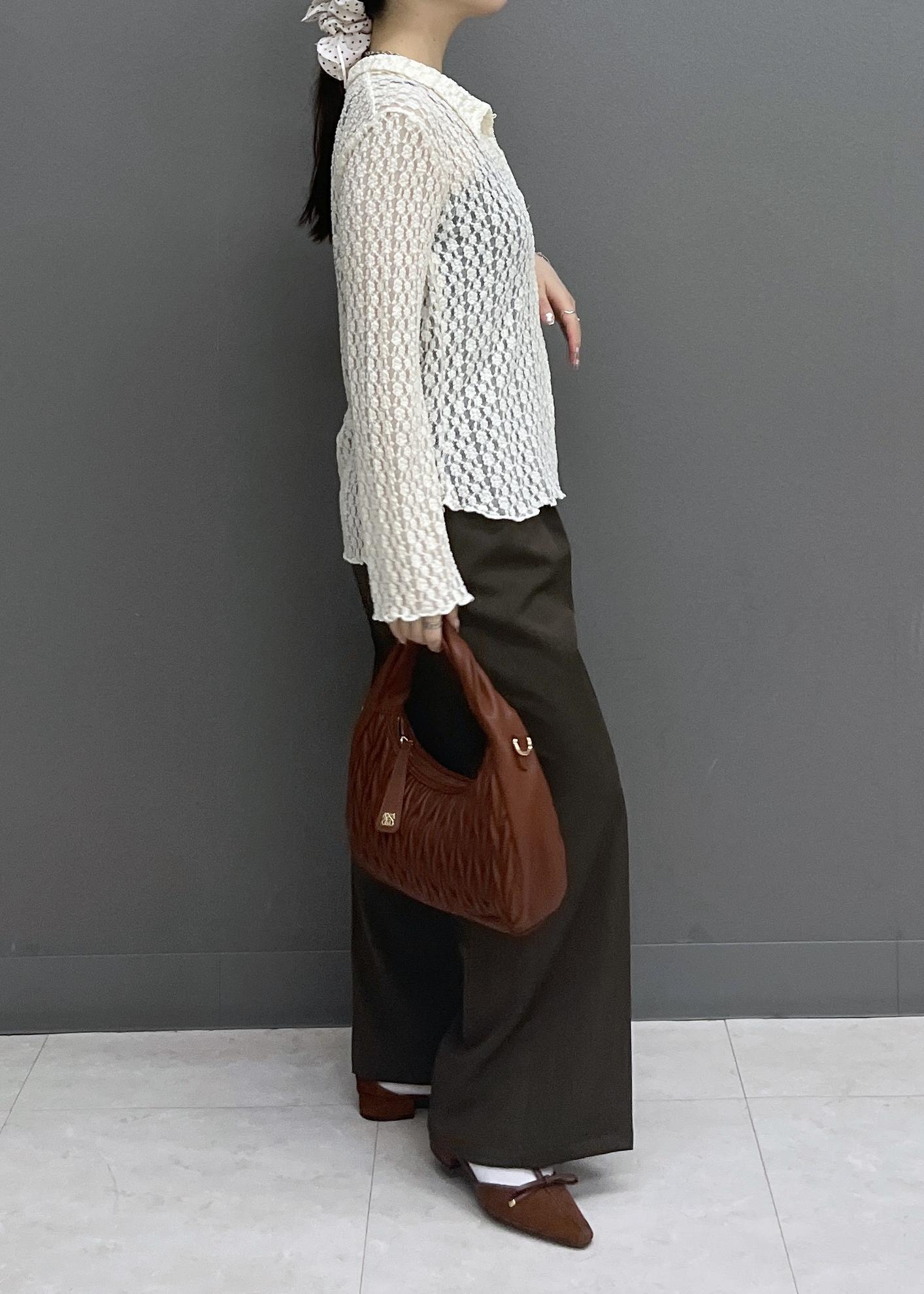 甘めなレースのカーディガンをワイドパンツで合わせた大人女子におすすめしたいコーディネート!!