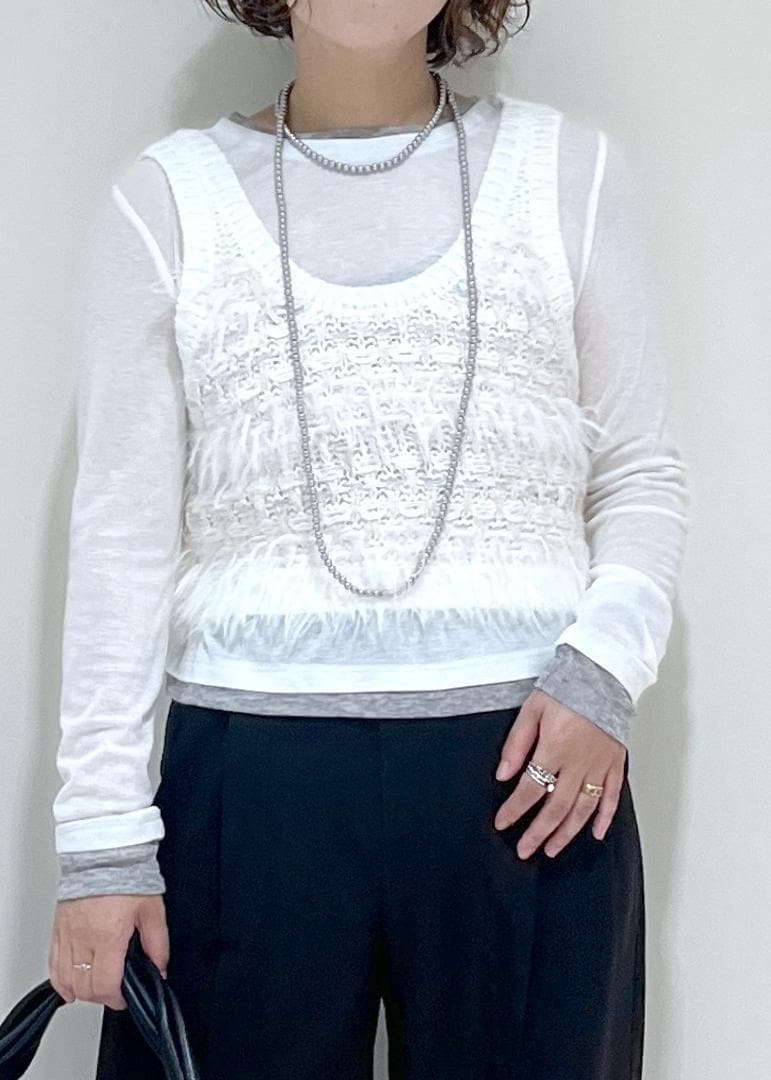 VIS配色レイヤードシアーロンTオフホワイト / F¥4,389レビュー一枚でレイヤードが叶うシアー感のあるトップスです。