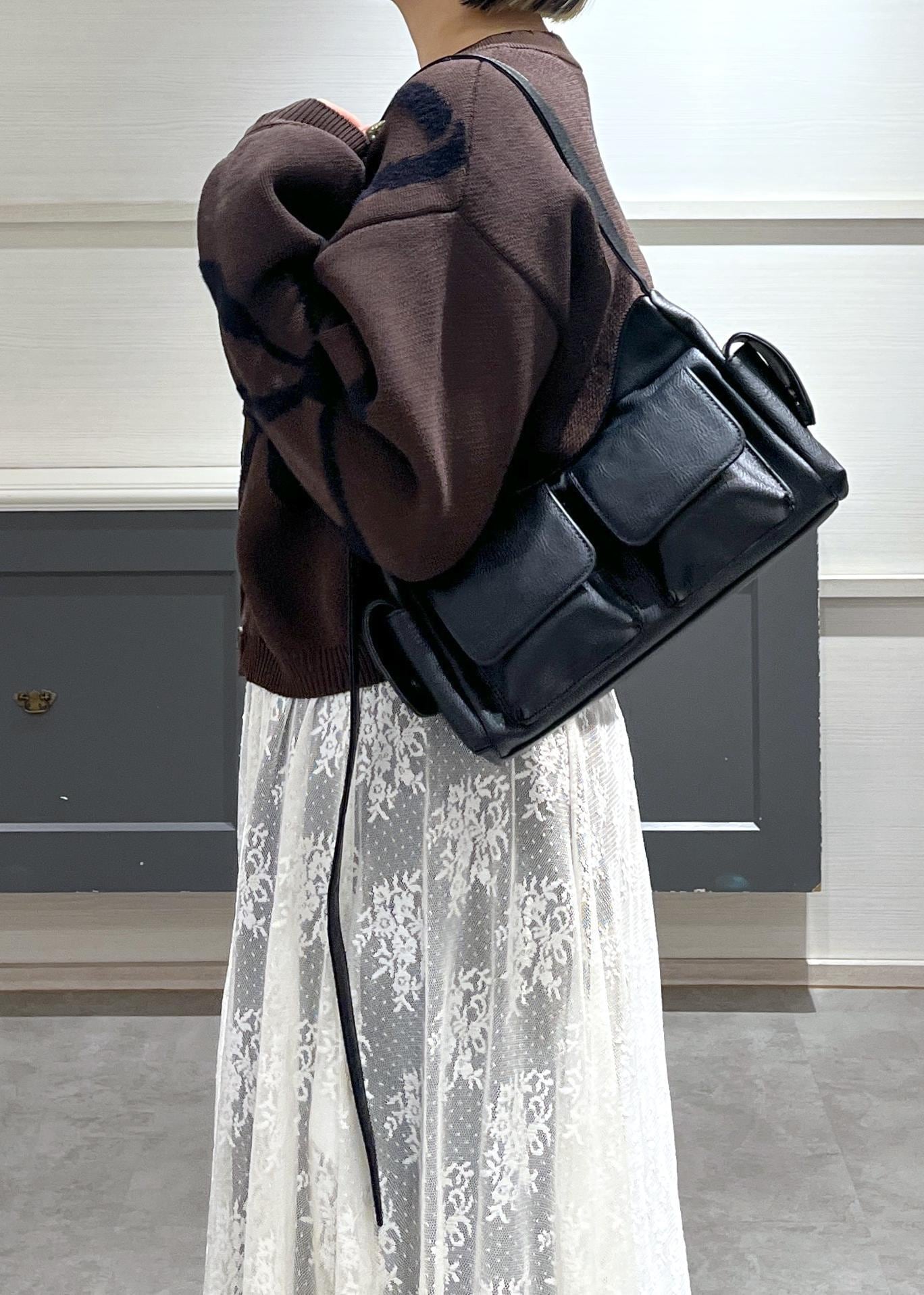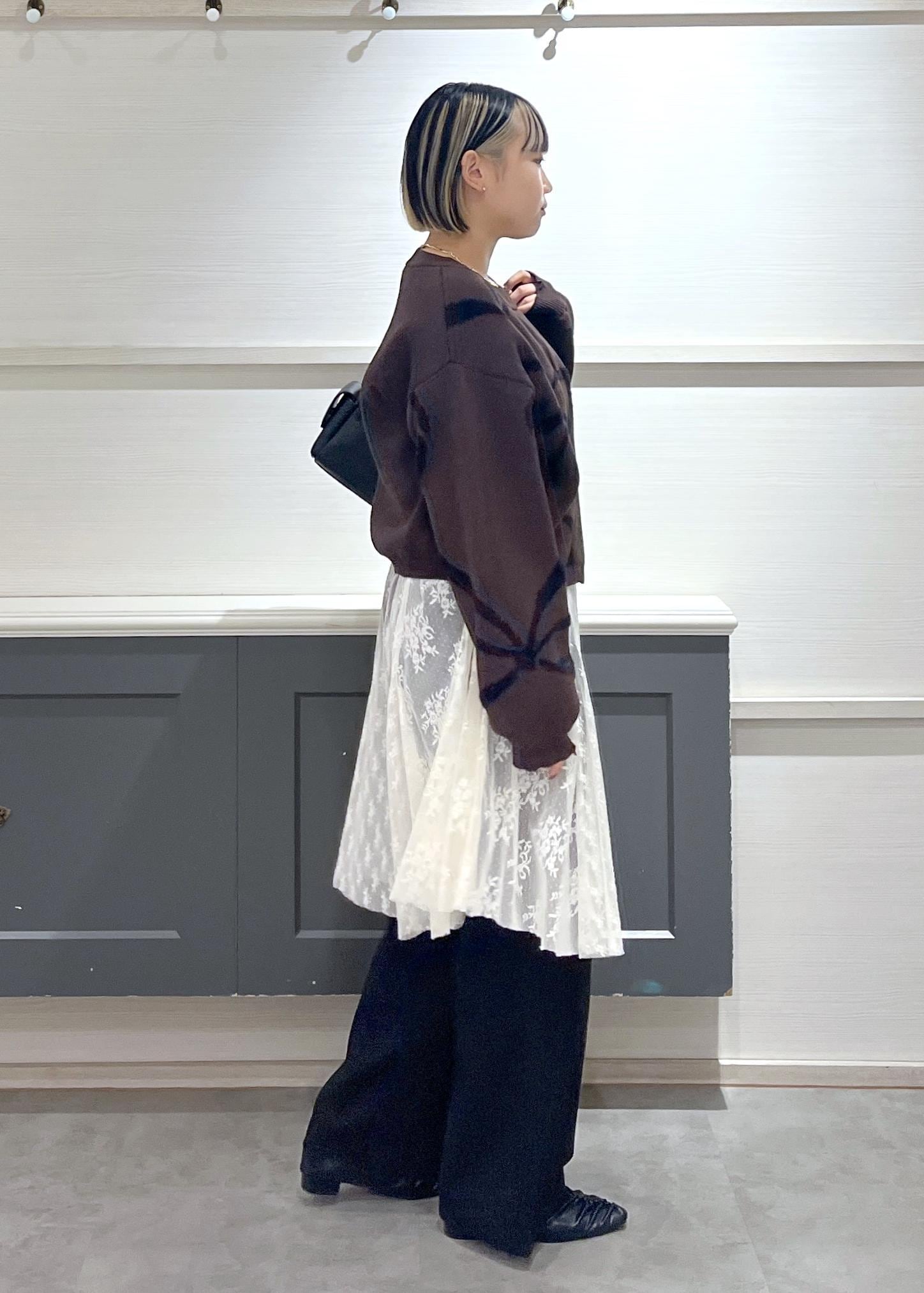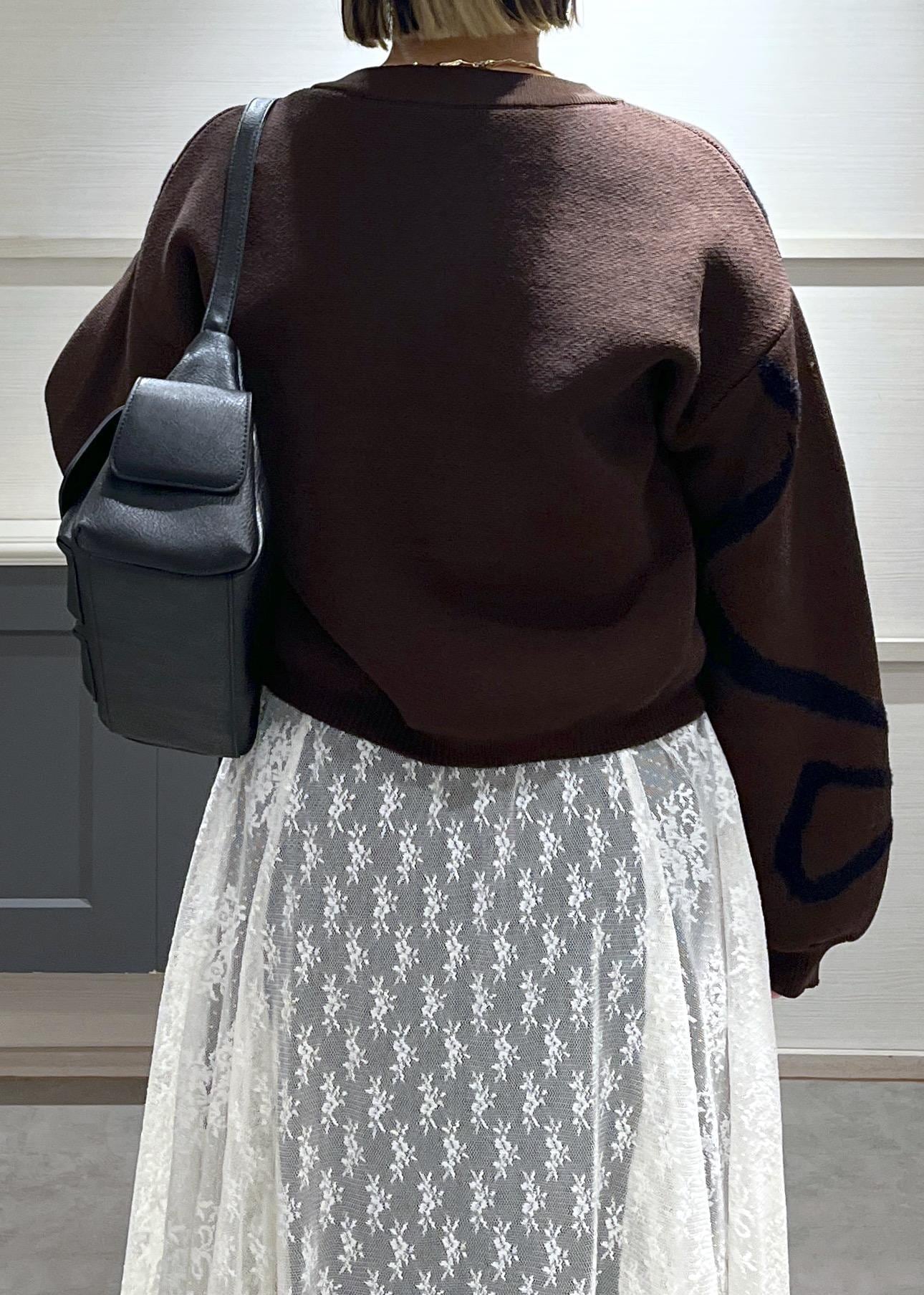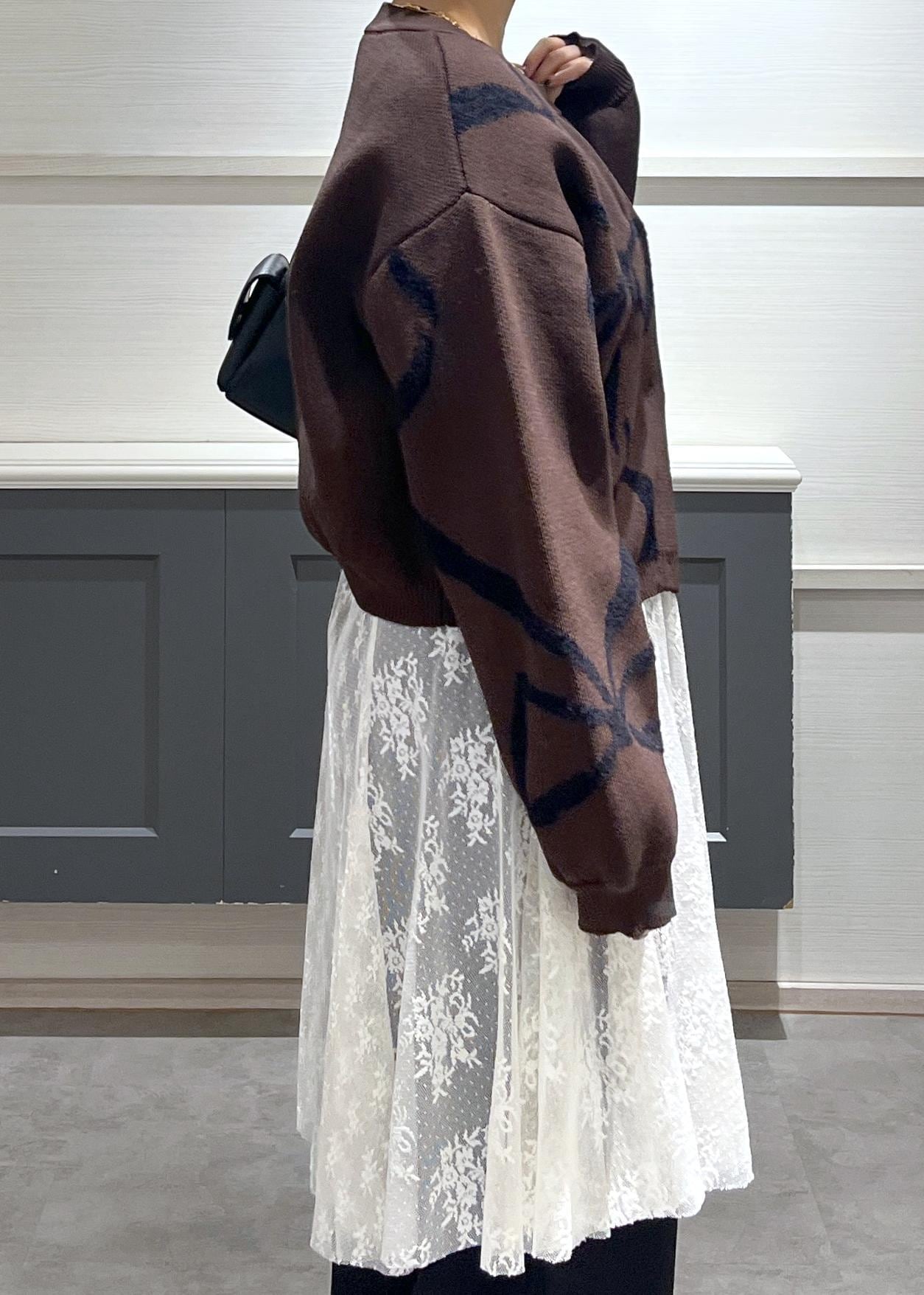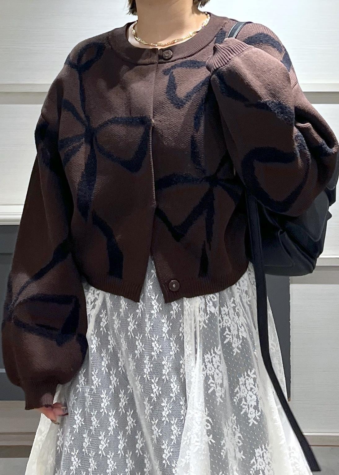 VISリボンモチーフジャガードカーディガン/イージーケアダークブラウン / F¥6,919レビューオーバーサイズですが、