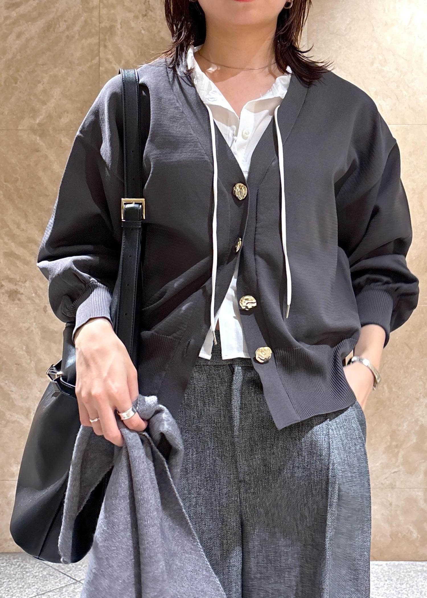 VIS【WEB限定】メタル釦オーバーサイズカーディガンチャコール / F¥4,612レビュー軽い素材で長いシーズンに使えそうな素材感。