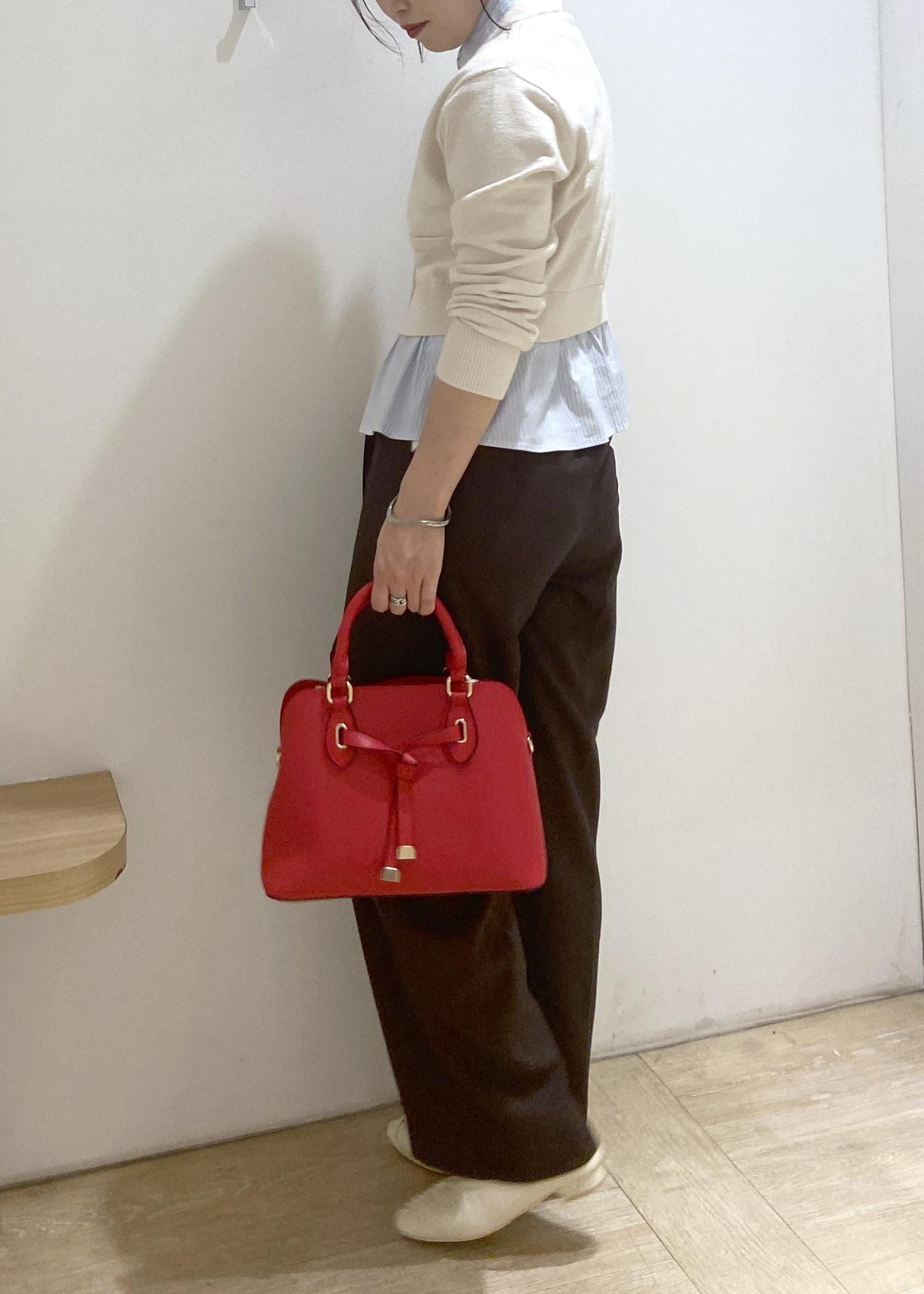 VISフロントタイ ブガッティ型ボストンバッグ/2WAYレッド / F¥7,909レビュー見た目はコンパクトですが、500mlのペットボトルや長財布もスッポリと入る容量です。