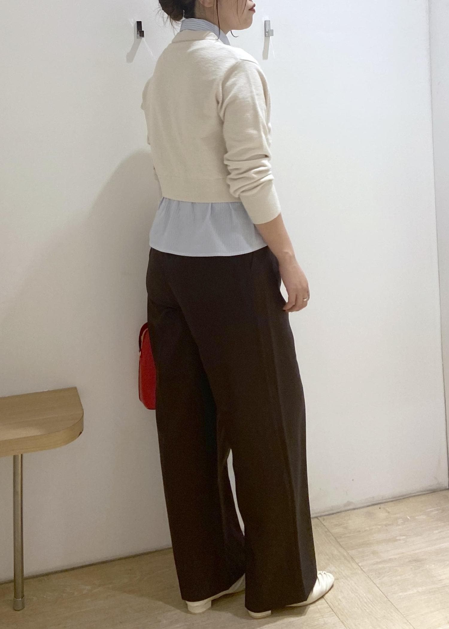 お尻はしっかり見える丈感なので、パンツだけでなくスカートと合わせるのもおすすめです。 -