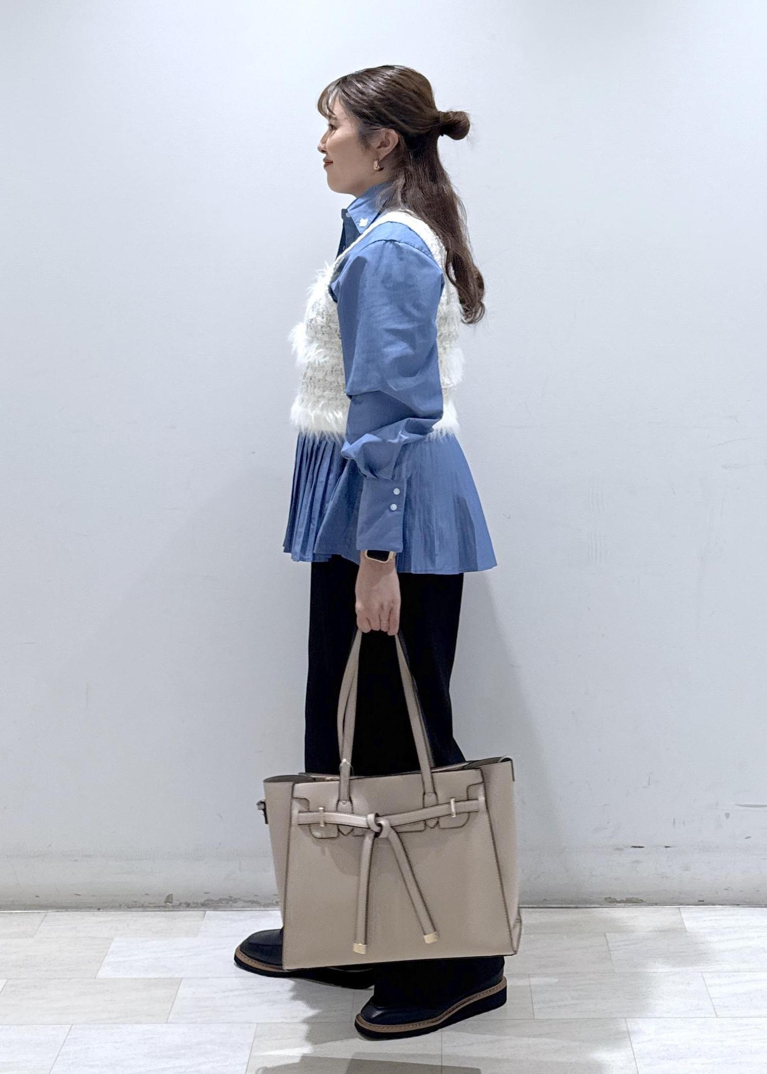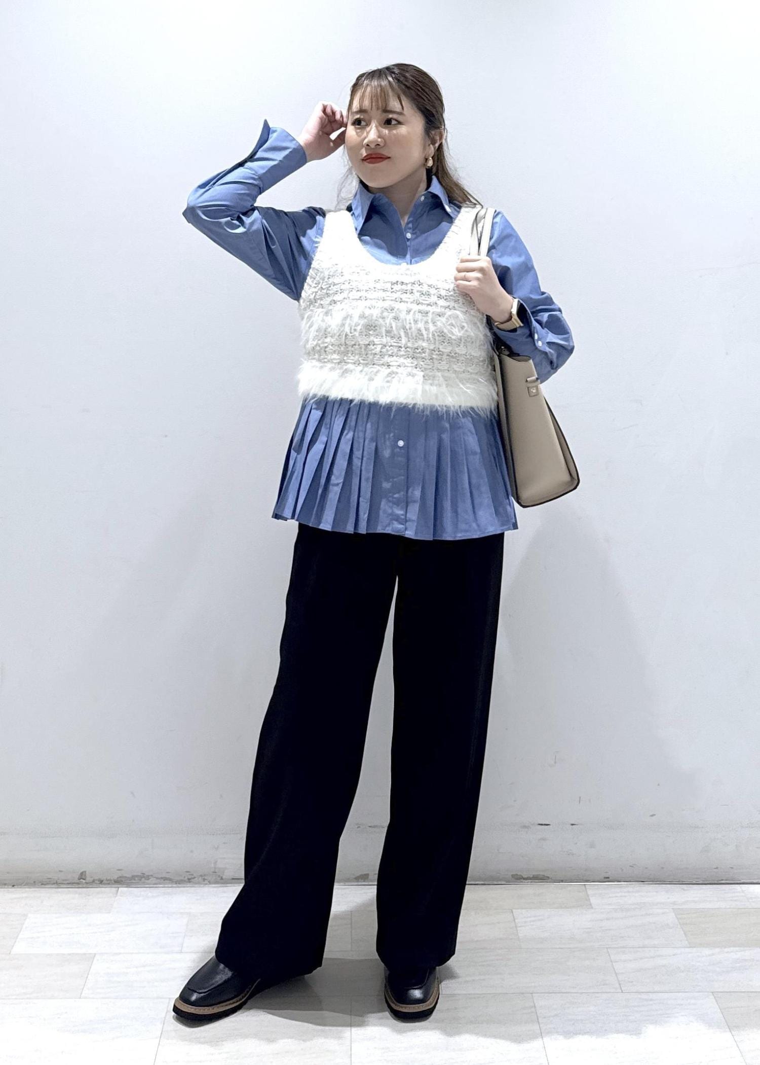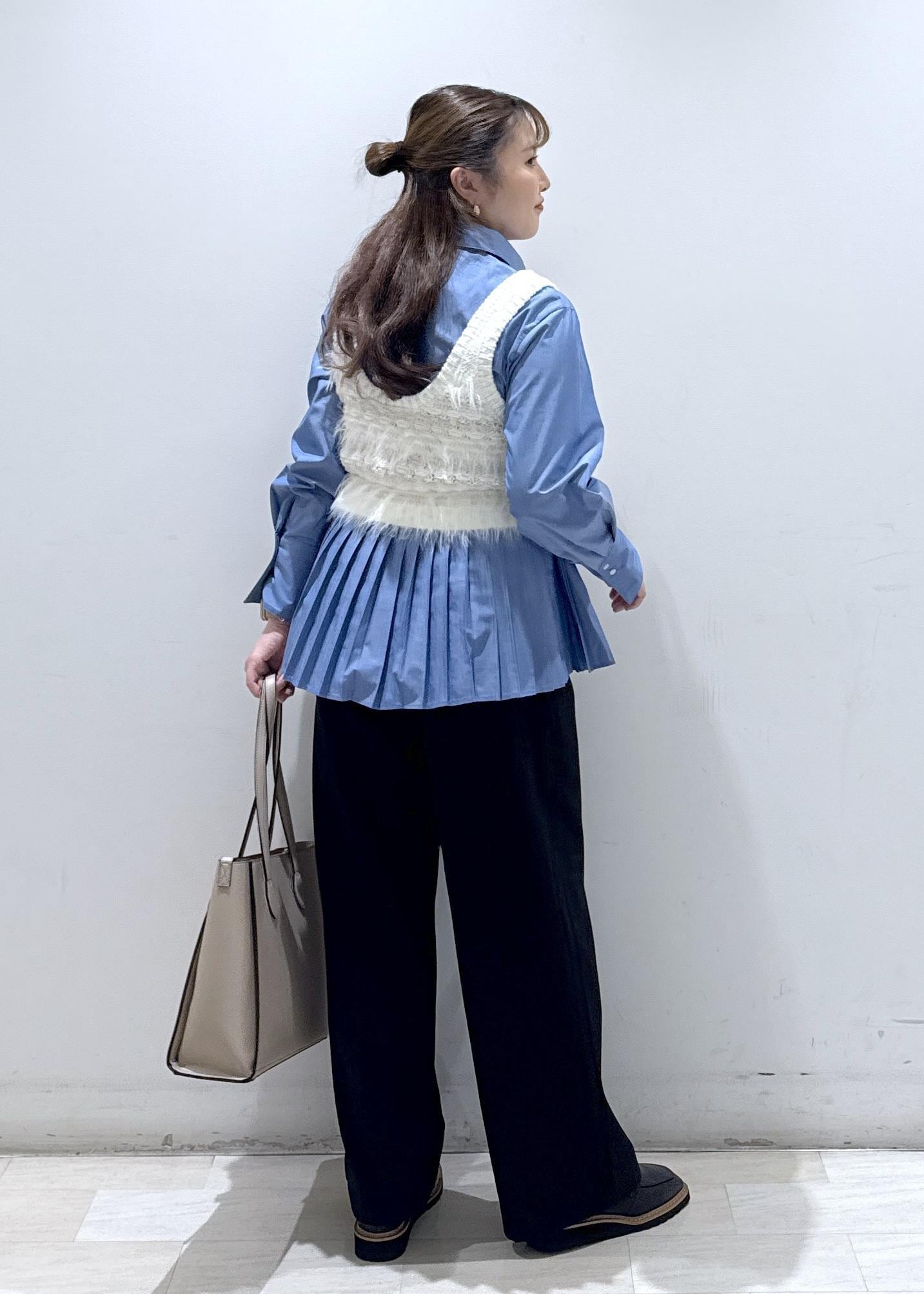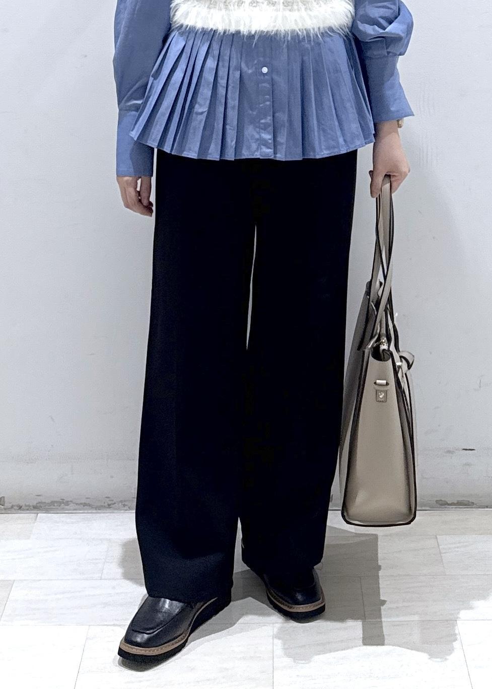 今回は新作で入荷しましたブルーのプリーツシャツに