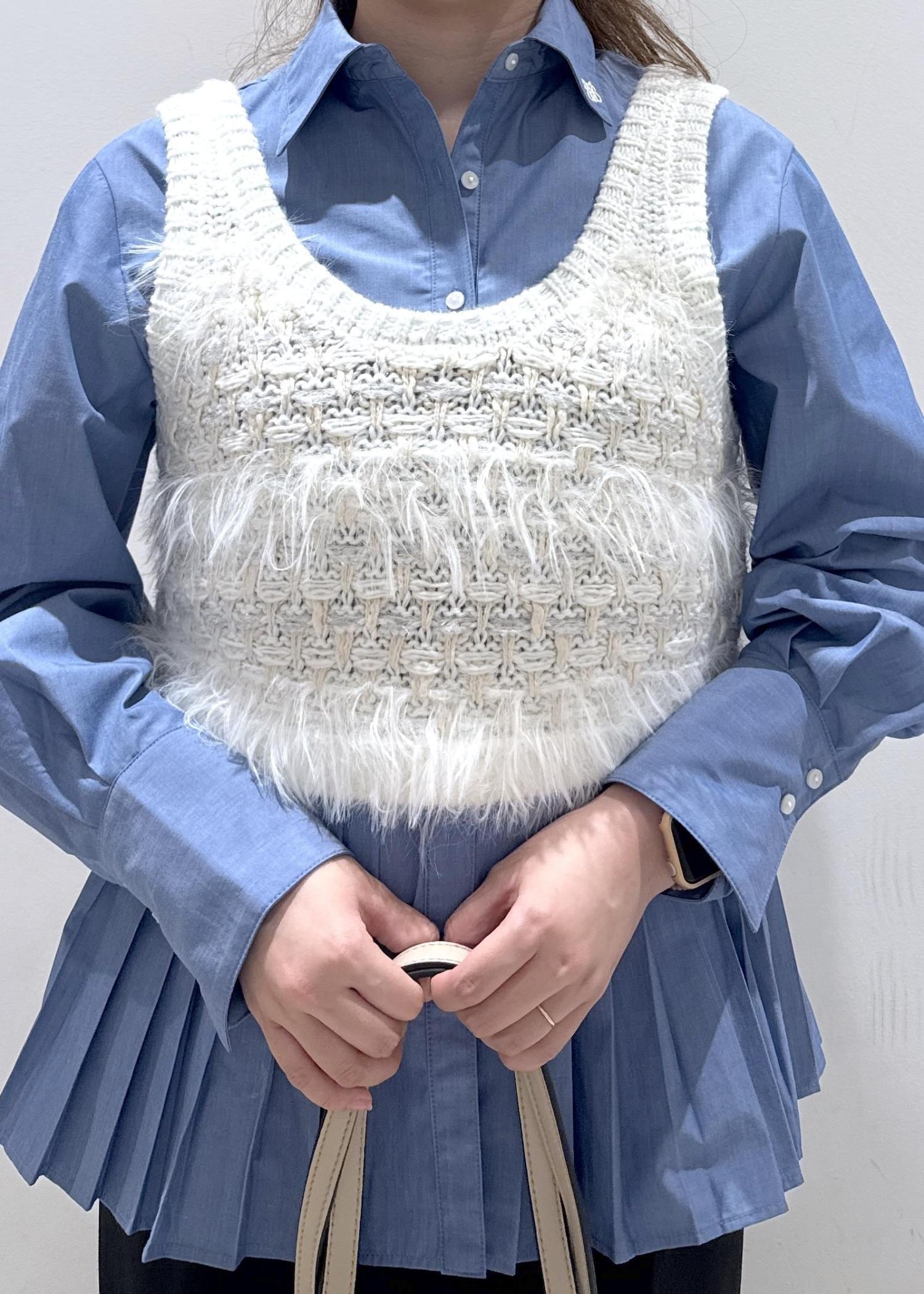 VISフェザーツイードニットビスチェ/2WAYキナリ / F¥5,489レビューフリンジのついたラメ感のあるニットビスチェ!骨格ストレートの私で上半身の特にバストがあるのですが、こちらはニット素材なので伸び感もあってキツくなかったです。着丈は短めなので、シンプルなシャツやTシャツ、ワンピースにポイントとして着ても可愛いです。