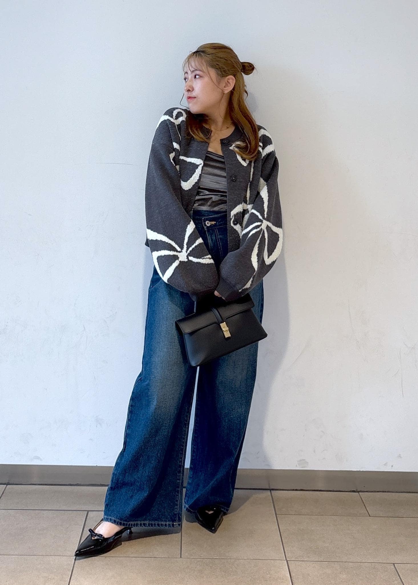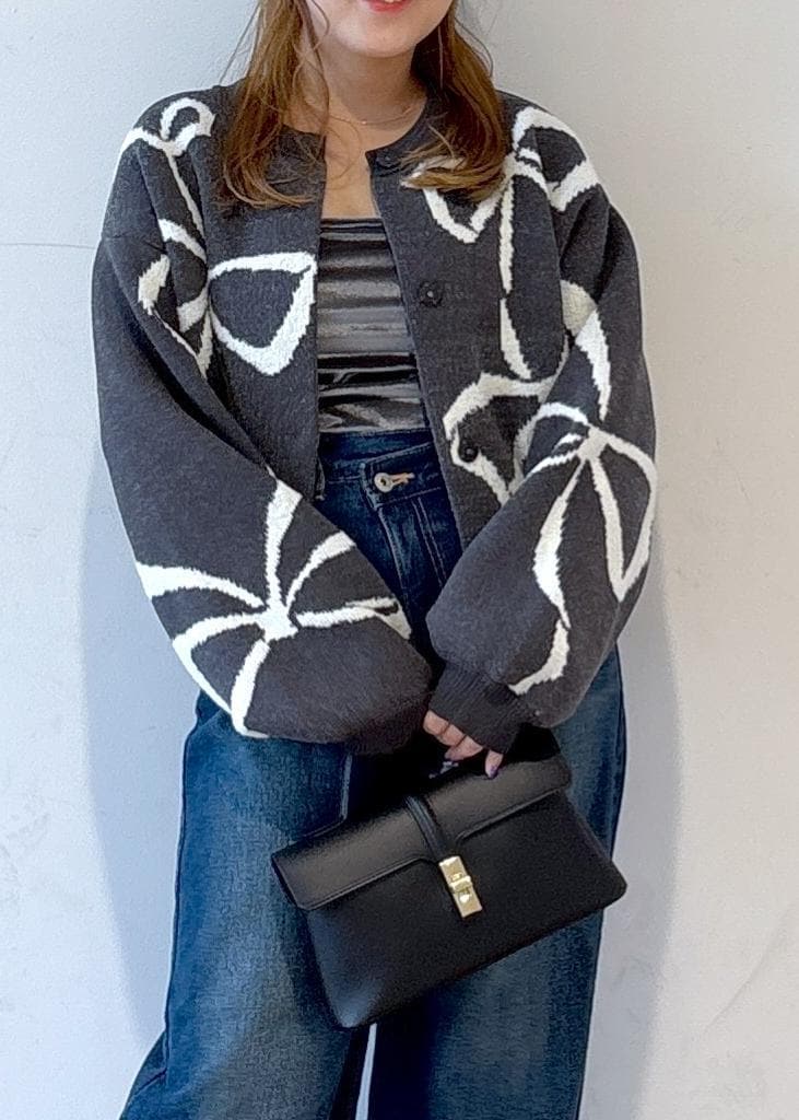 VISリボンモチーフジャガードカーディガン/イージーケアグレー / F¥6,919レビュー分厚め素材で温かいです!