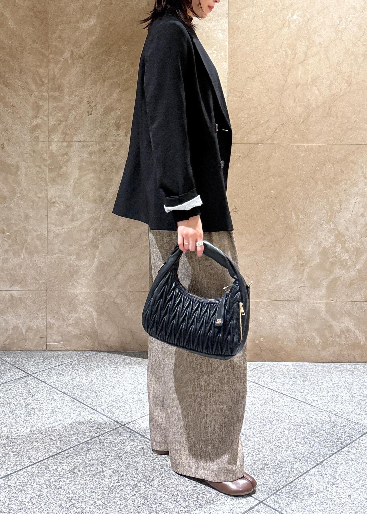 VIS【2WAY】ねじりハンドルキルティングバッグブラック / F¥7,909レビューマチがあるので意外と容量感が大きいです。