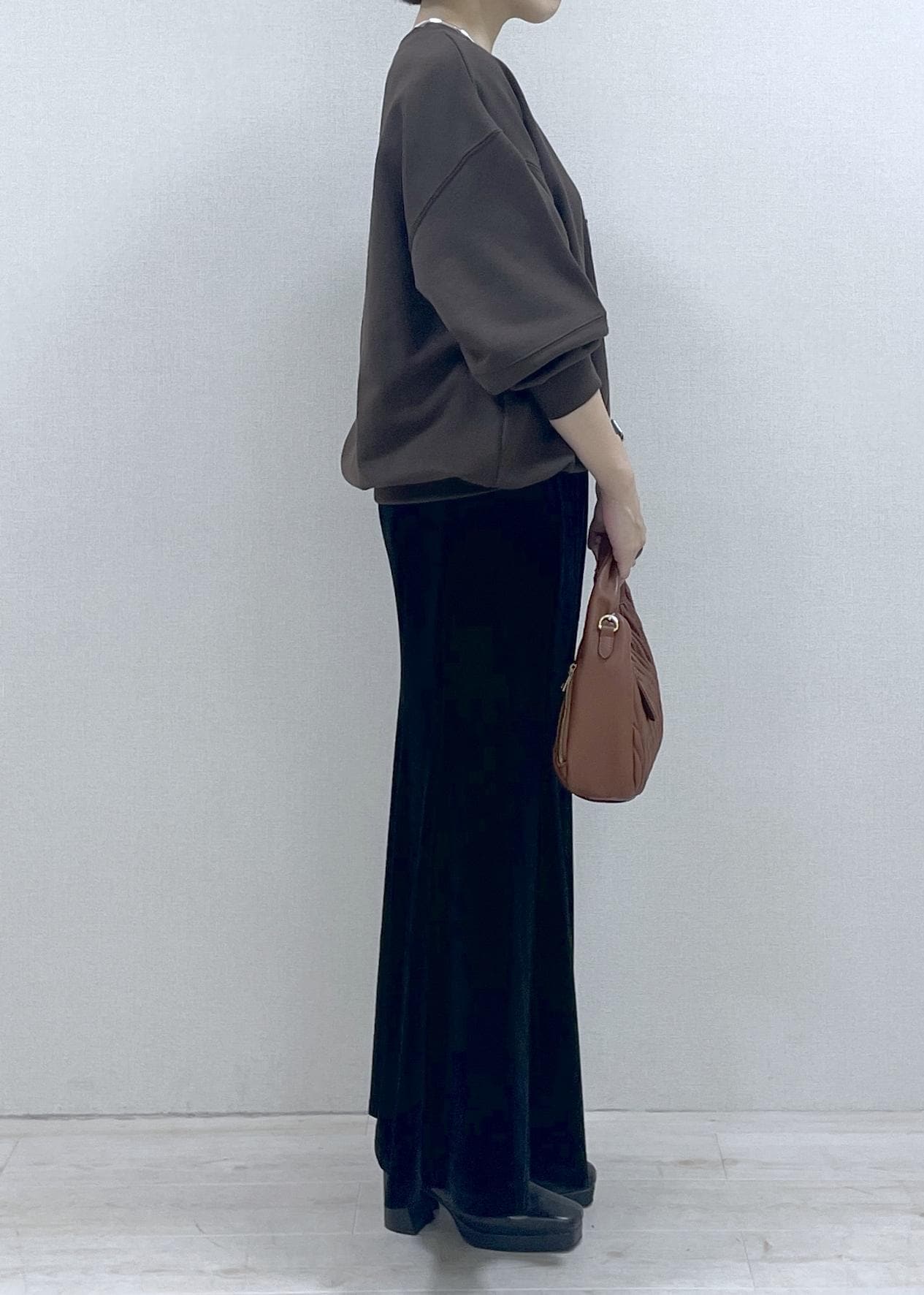 ゆとりがあるので、ニットやスウェットなど着込んでも余裕があります。