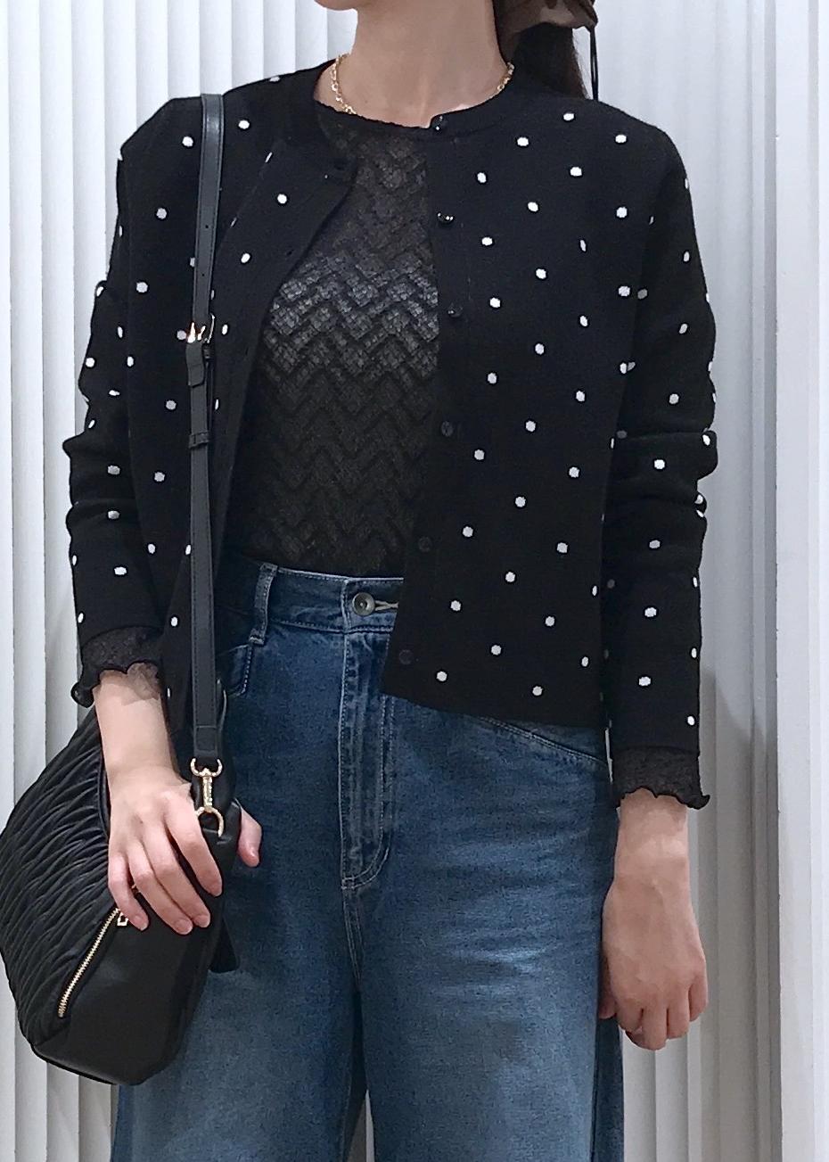 ドットジャガードカーディガンコーデ