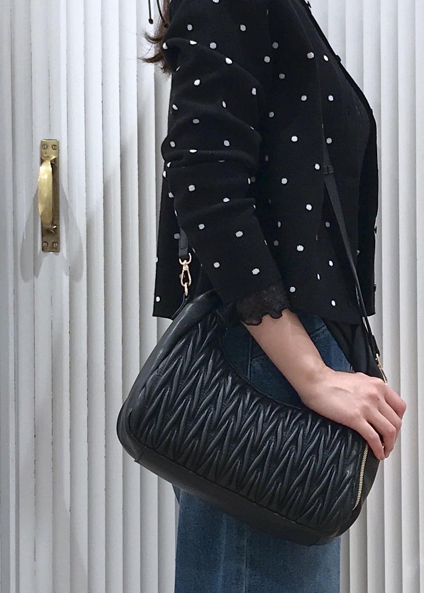 VIS【2WAY】ねじりハンドルキルティングバッグブラック / F¥7,909レビュー表面のキルティングが可愛いねじりハンドルバッグです。