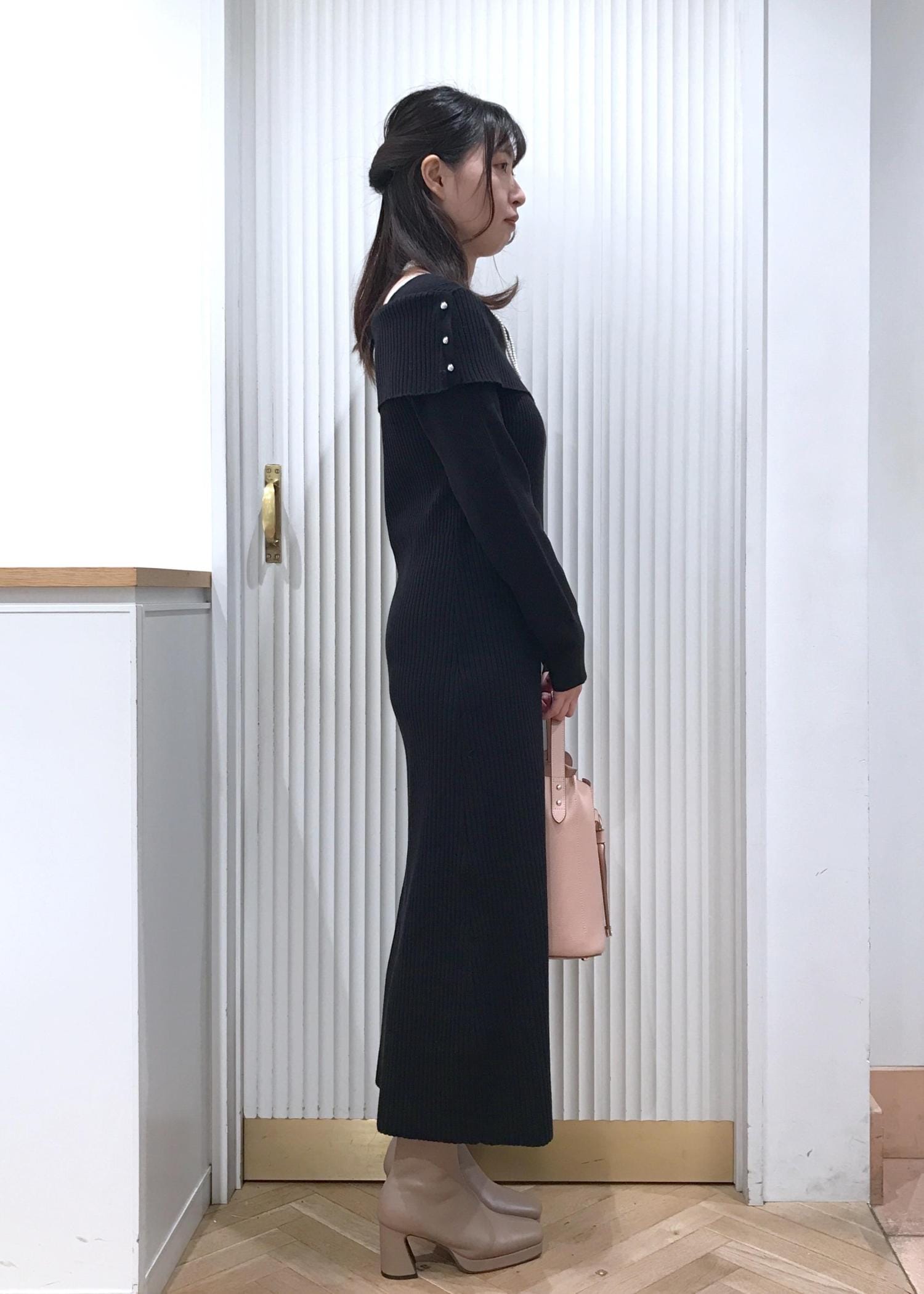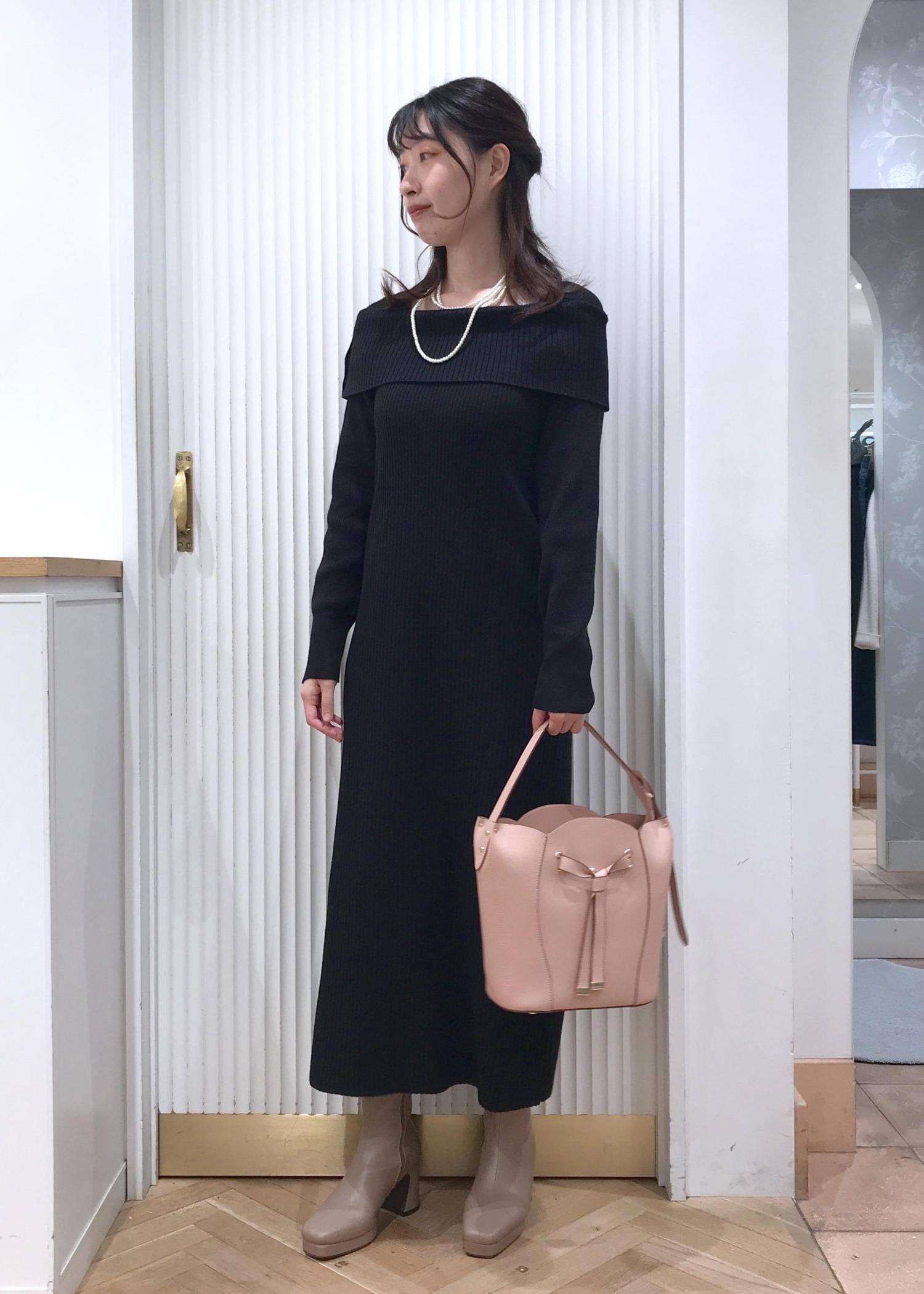 VISアシメオフショルリブニット美シルエットワンピース/着丈が選べるブラック / F¥8,899レビュー私の身長で足首が出る着丈感です。