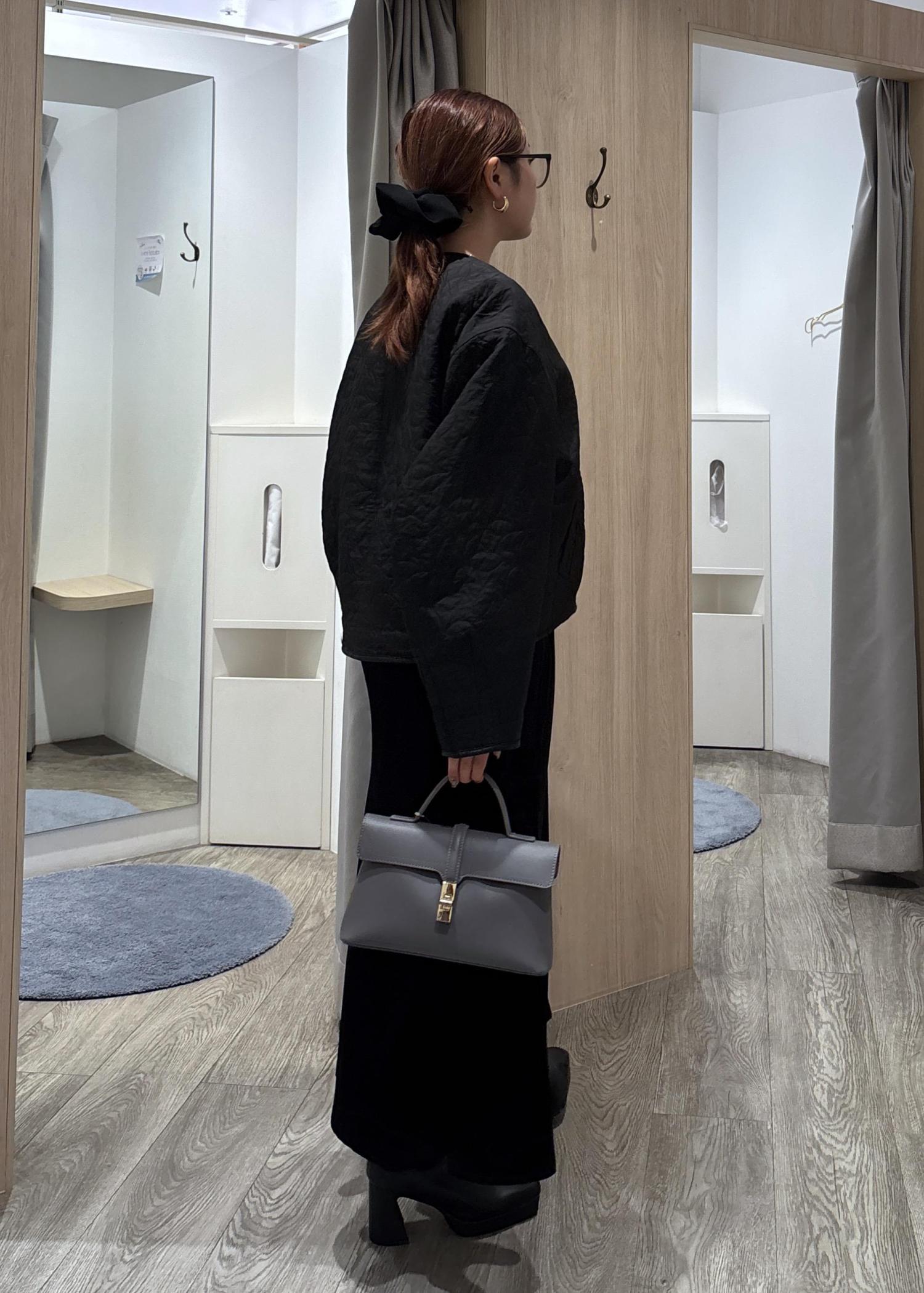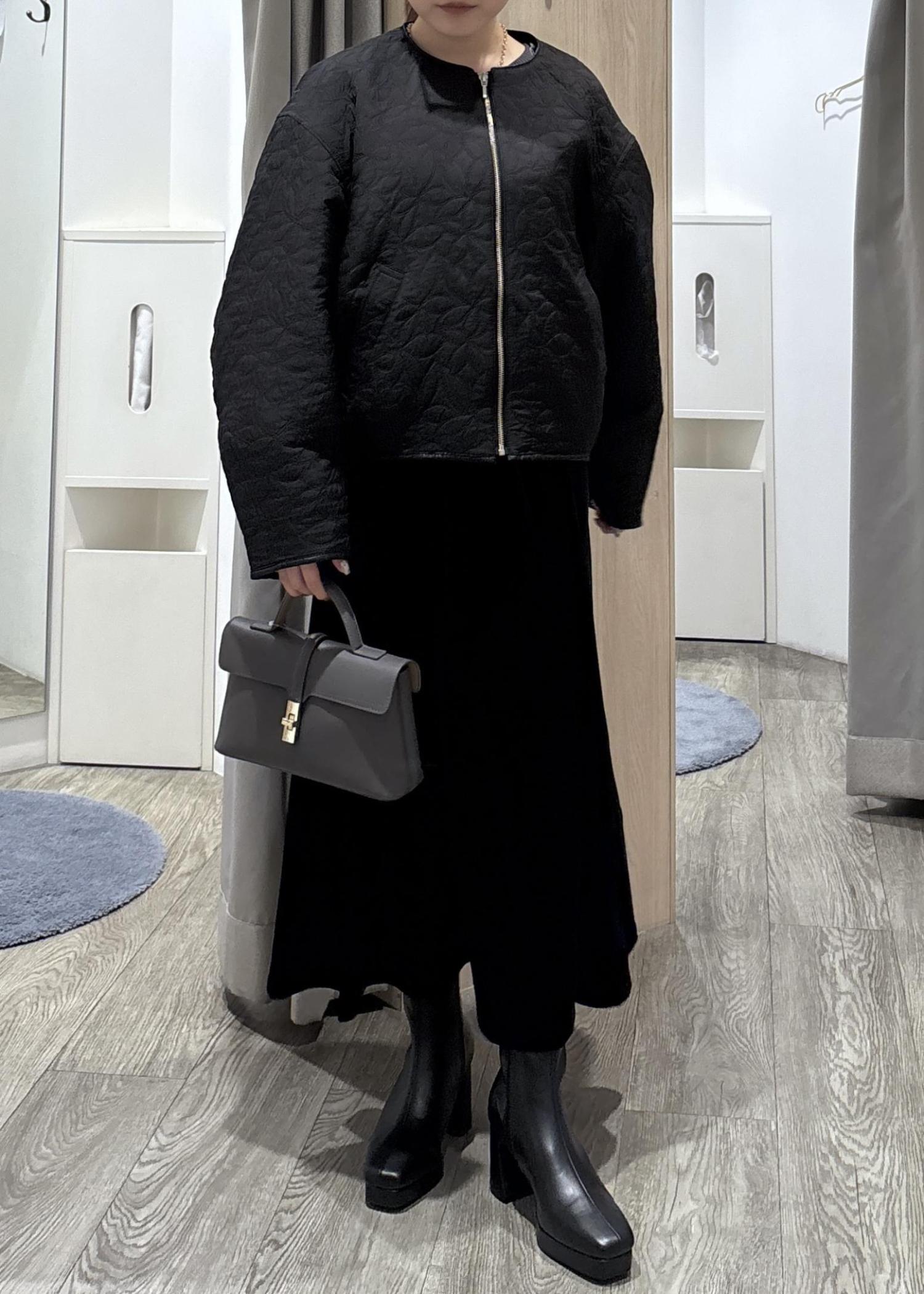 中にボリュームのあるニットやスウェットを合わせてもごわつくことなく着用できました◎ -