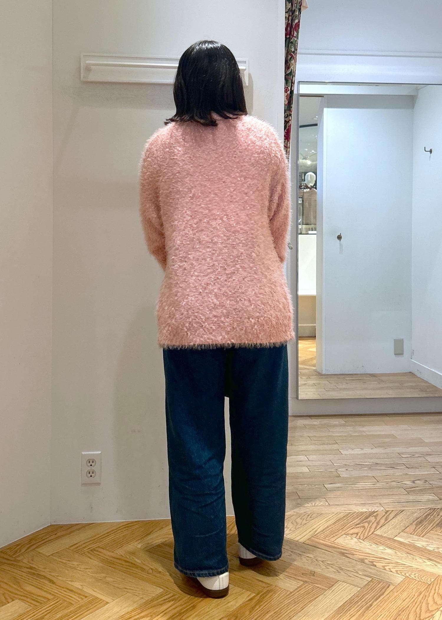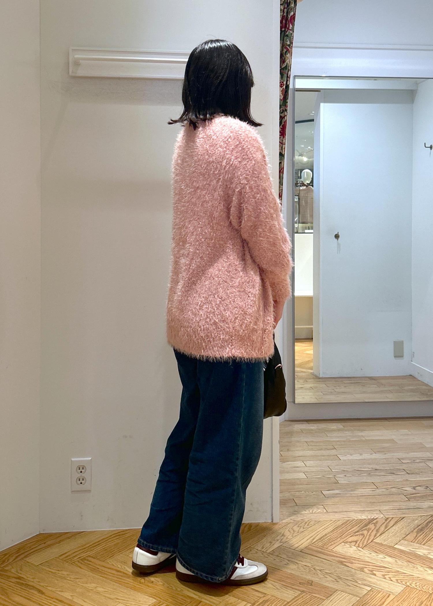ピンクのカーディガンをデニム合わせで着てみました!