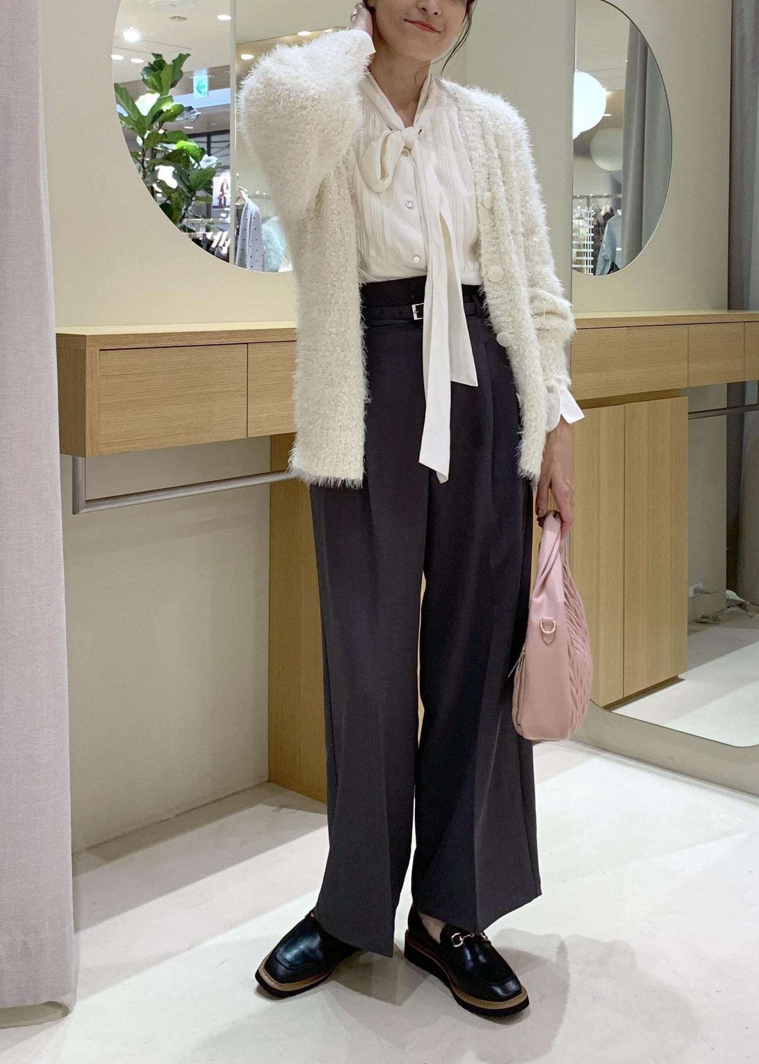 ワイドパンツなので、足元はブーツスタイルでももたつかずに歩けますよ。 -