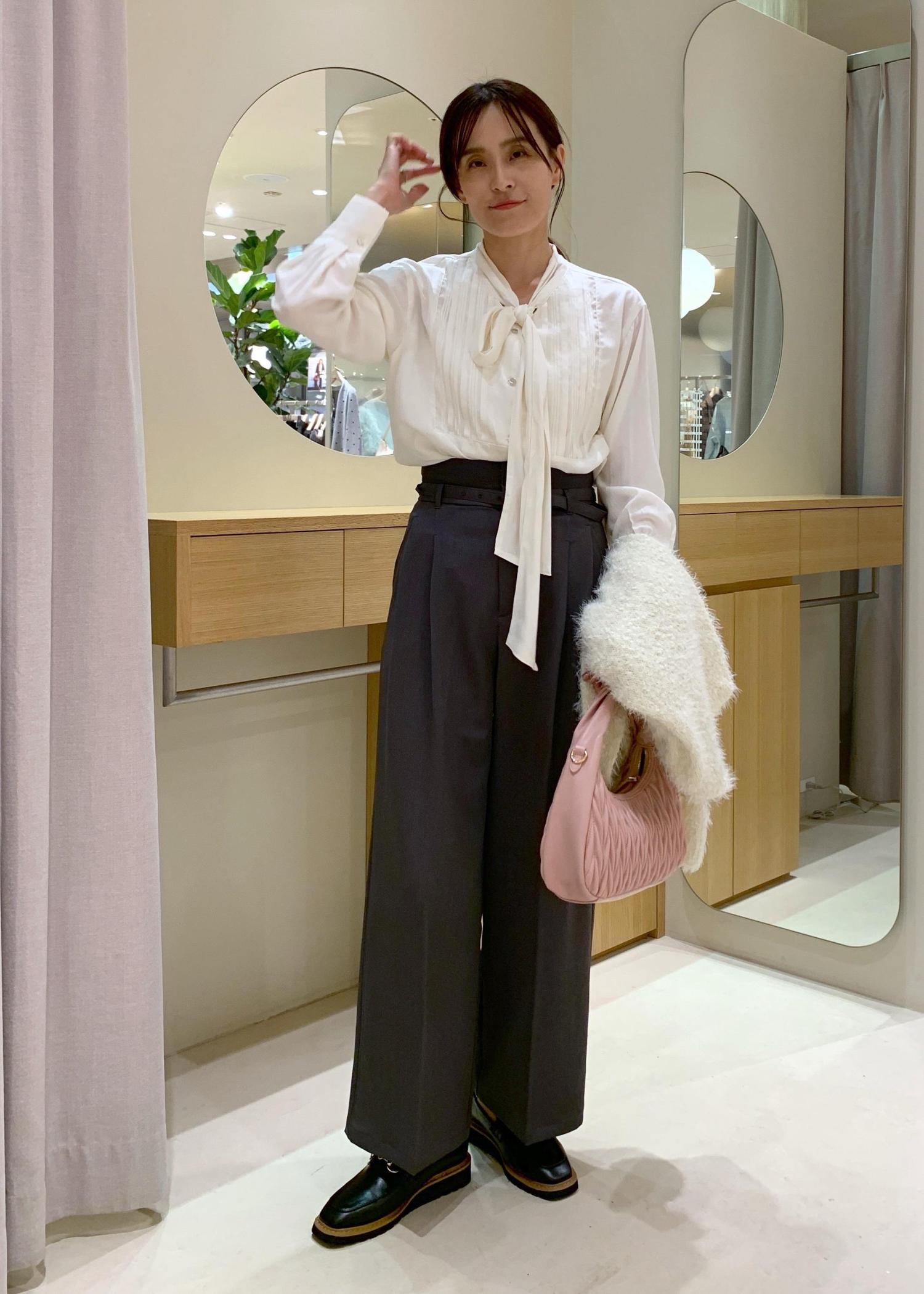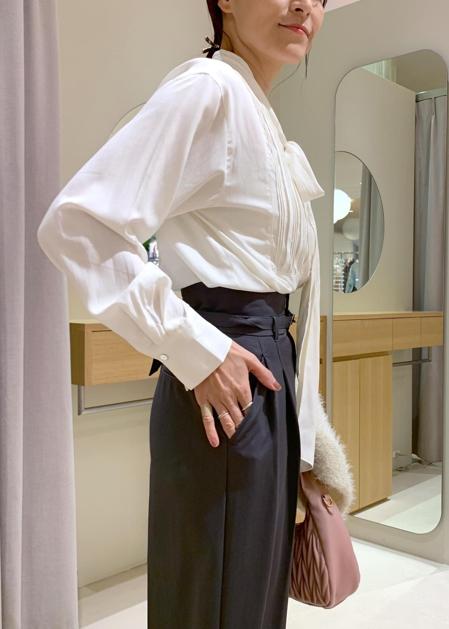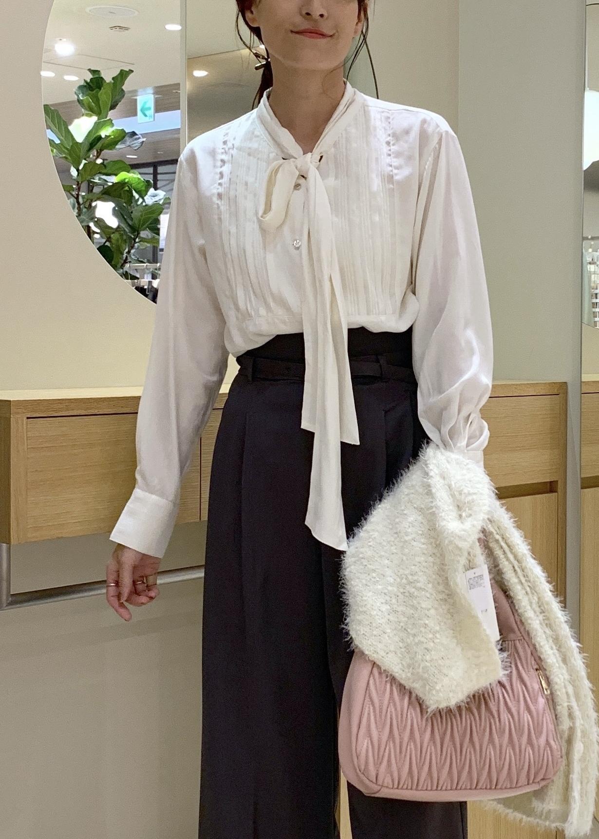 デザインは胸元のリボンボウタイで着映え力あり!リボンは柔らかく結べてハリがありすぎない為、見た目も甘すぎずに着用できますよ。これからの時期、カーディガンやジャケットのインアイテムとしても取り入れやすいです。 -