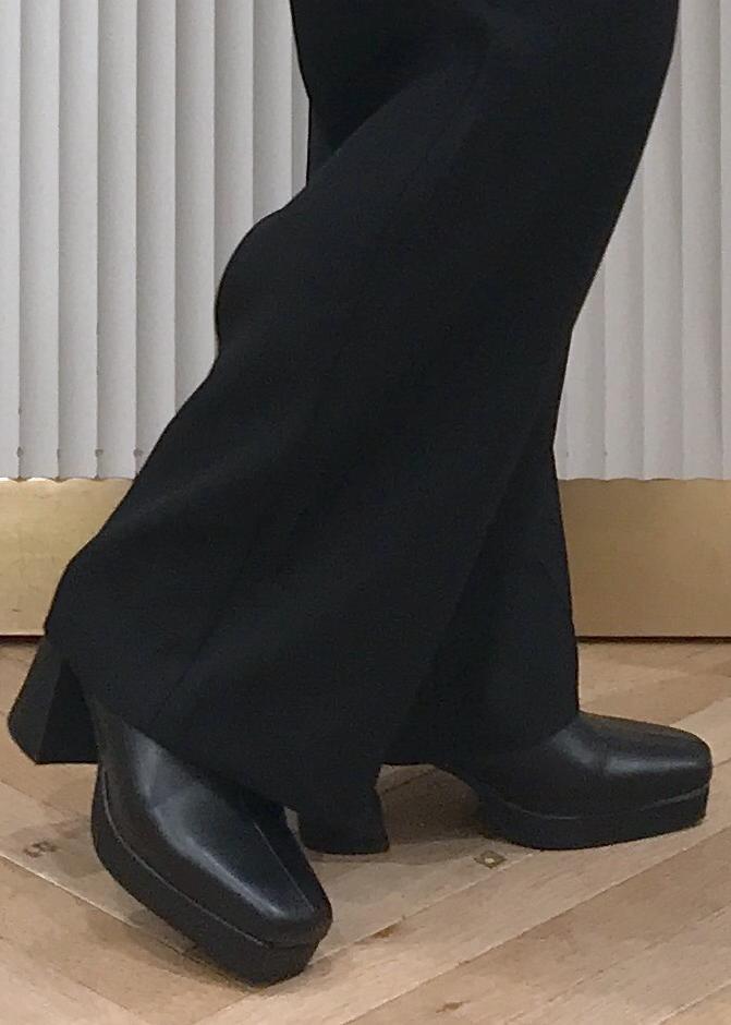 フラットシューズに合わせても引きずりませんが、気になる場合は少しヒールのある靴を合わせるのがおすすめです。