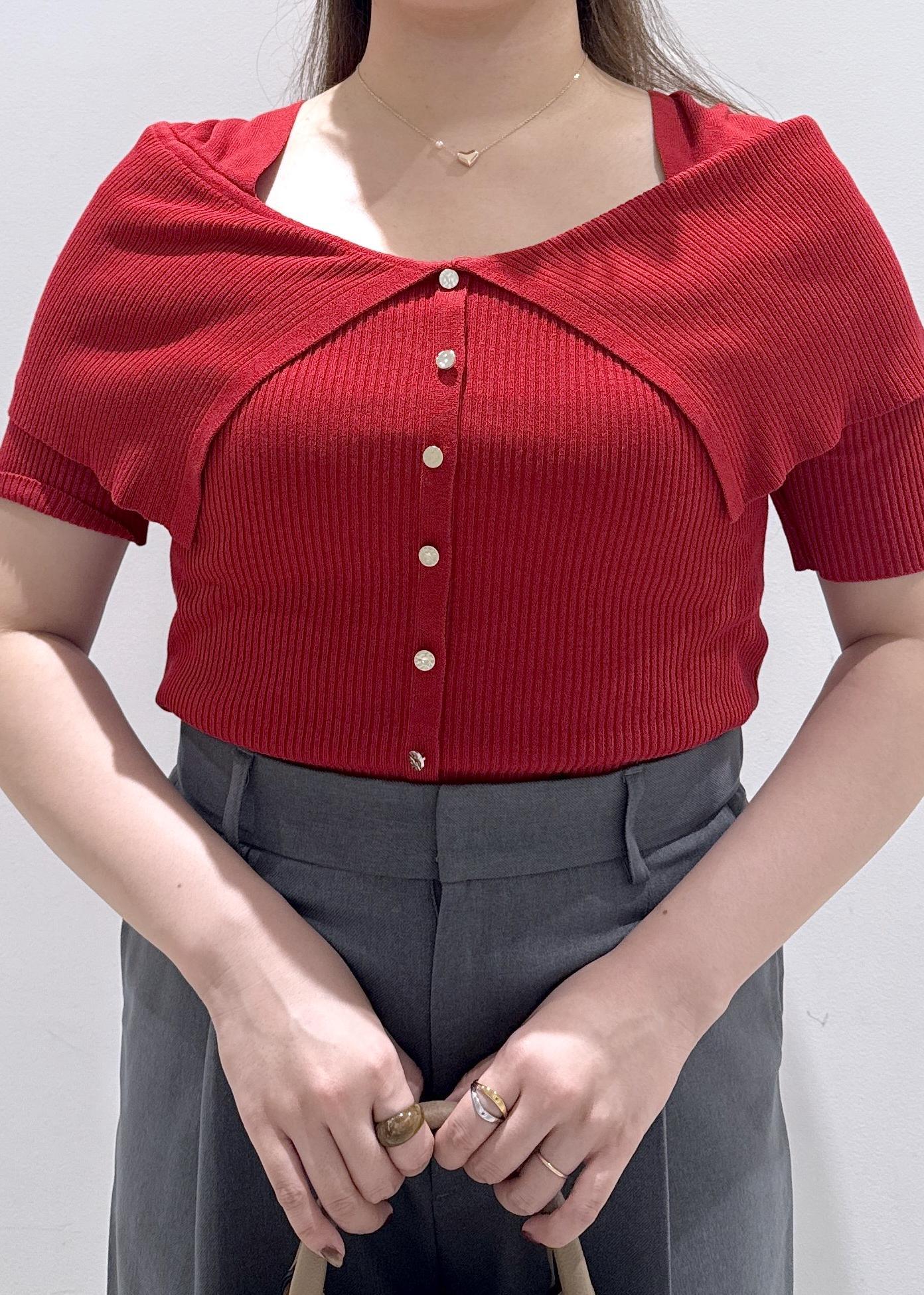 VISビックカラーオフショルハーフスリーブニットレッド / F¥2,963レビュー157cm/Fサイズ/骨格ストレート