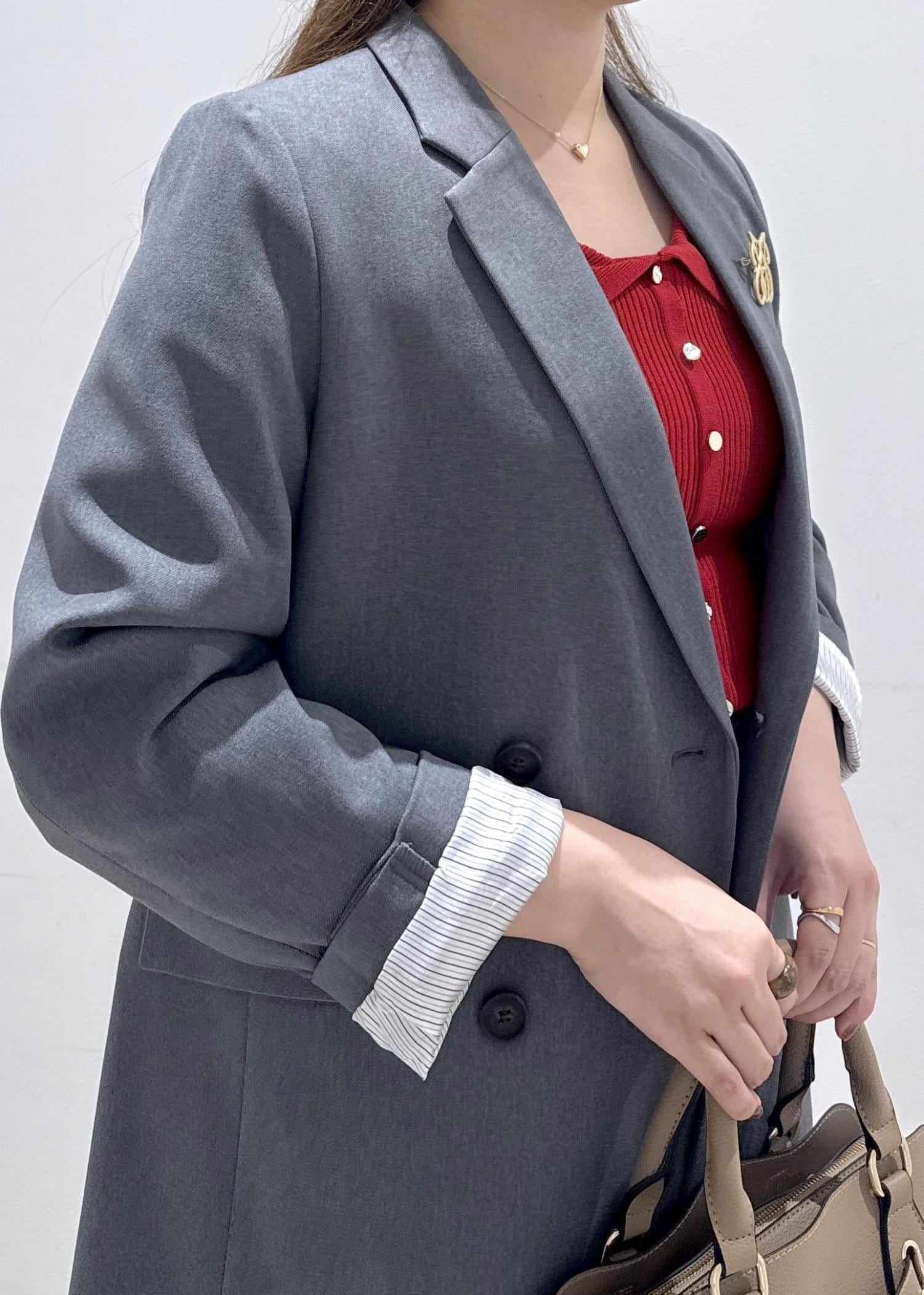 グレーは落ち着いた色味ではありますが、インナー次第で大人っぽくも使えるのでオススメです。
