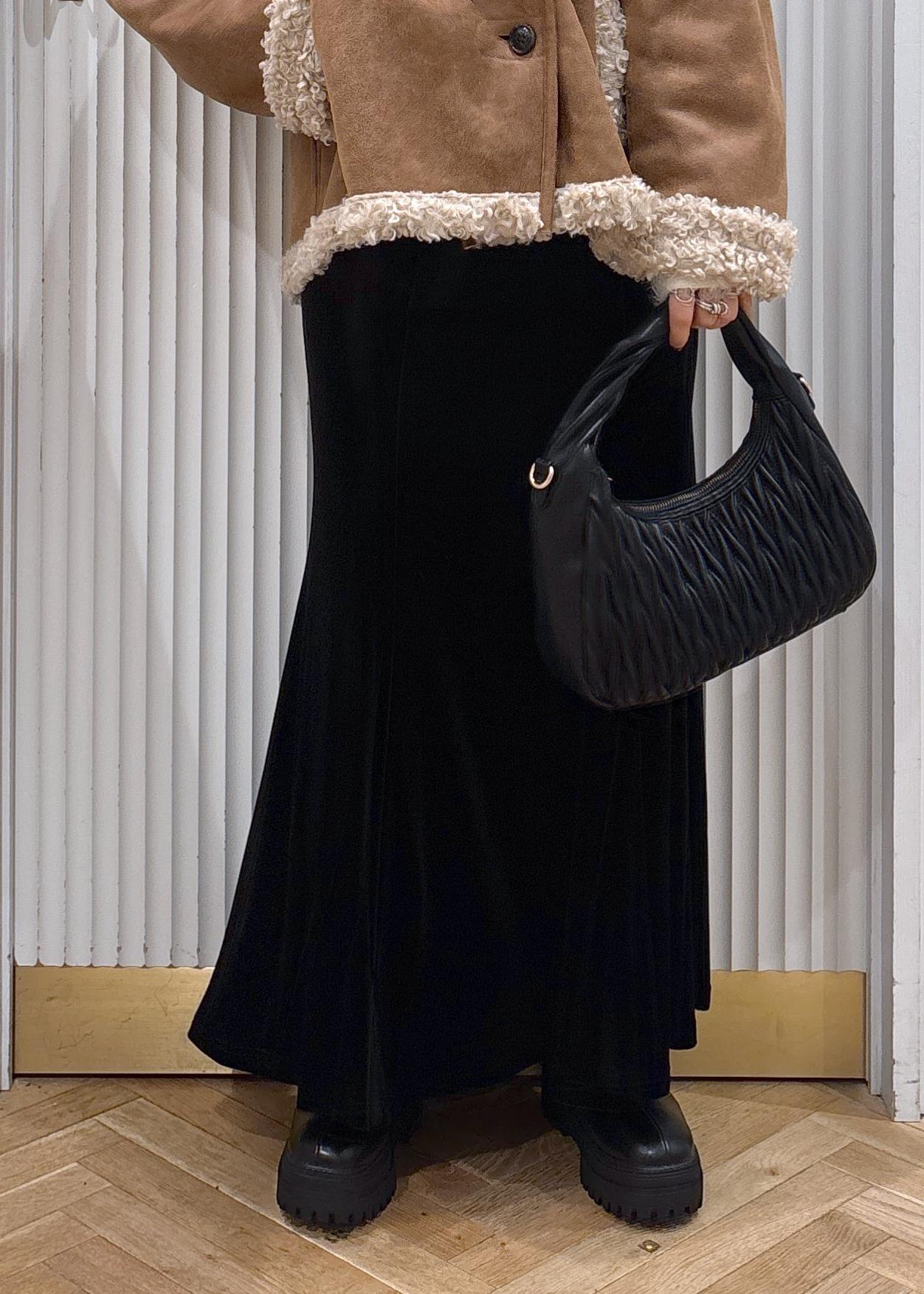 ベロアのフレアースカートで合わせた大人可愛いコーディネートにしてみました。