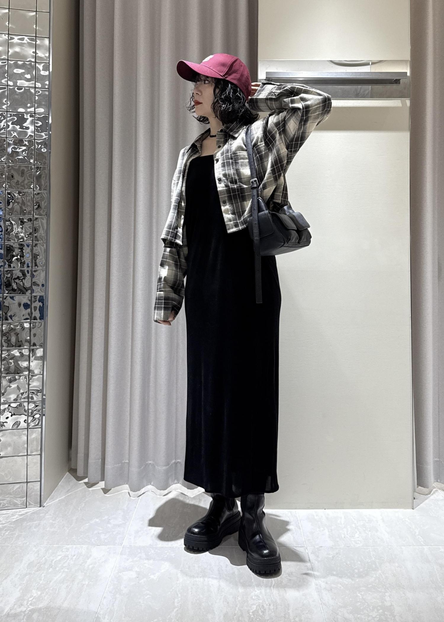 今年気分なベロアワンピースはジャケットなどでキレイめコーデも可愛いですが、少しはずしたカジュアルコーデにも相性◎