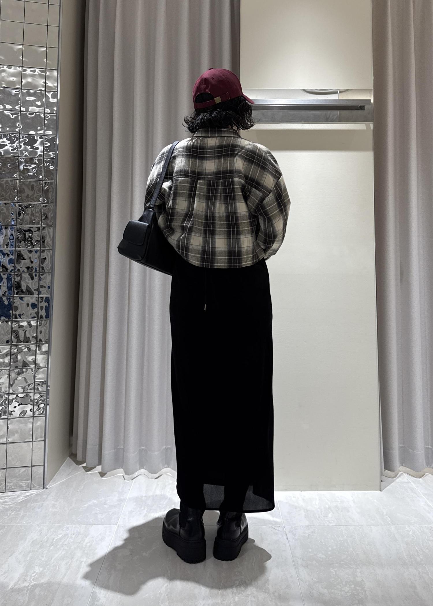 羽織ってるチェックシャツはEC、ルミネエスト限定アイテムです。(お問い合わせ品番→bvh85210)