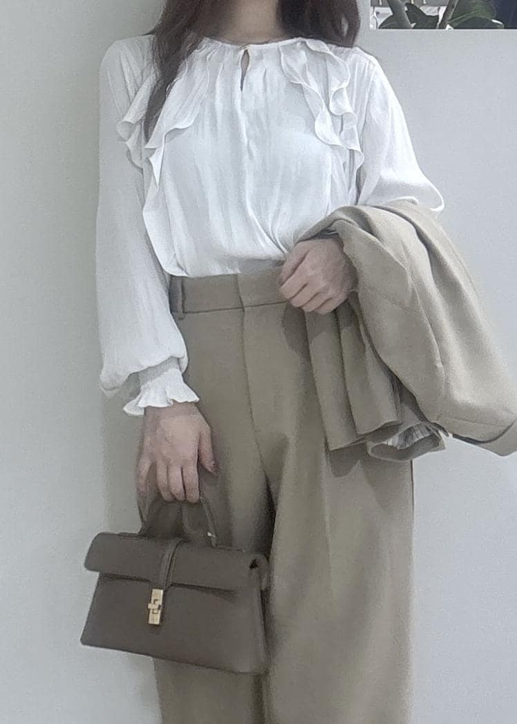 VIS割線フリルブラウス/イージーケアキナリ / F¥5,489レビューサラサラとした生地感が着心地よく、大ぶり過ぎないフリルが大人可愛いです◎
