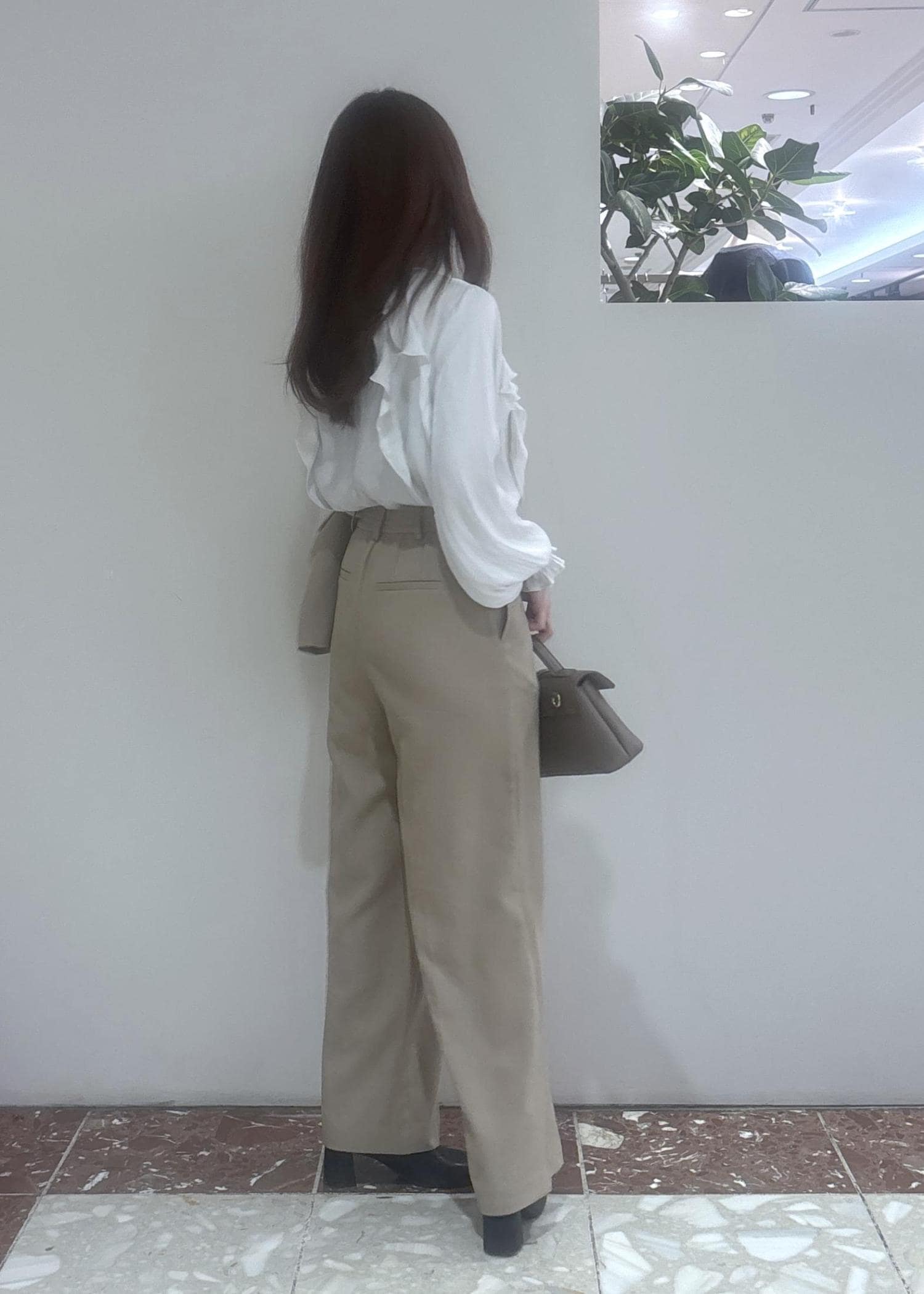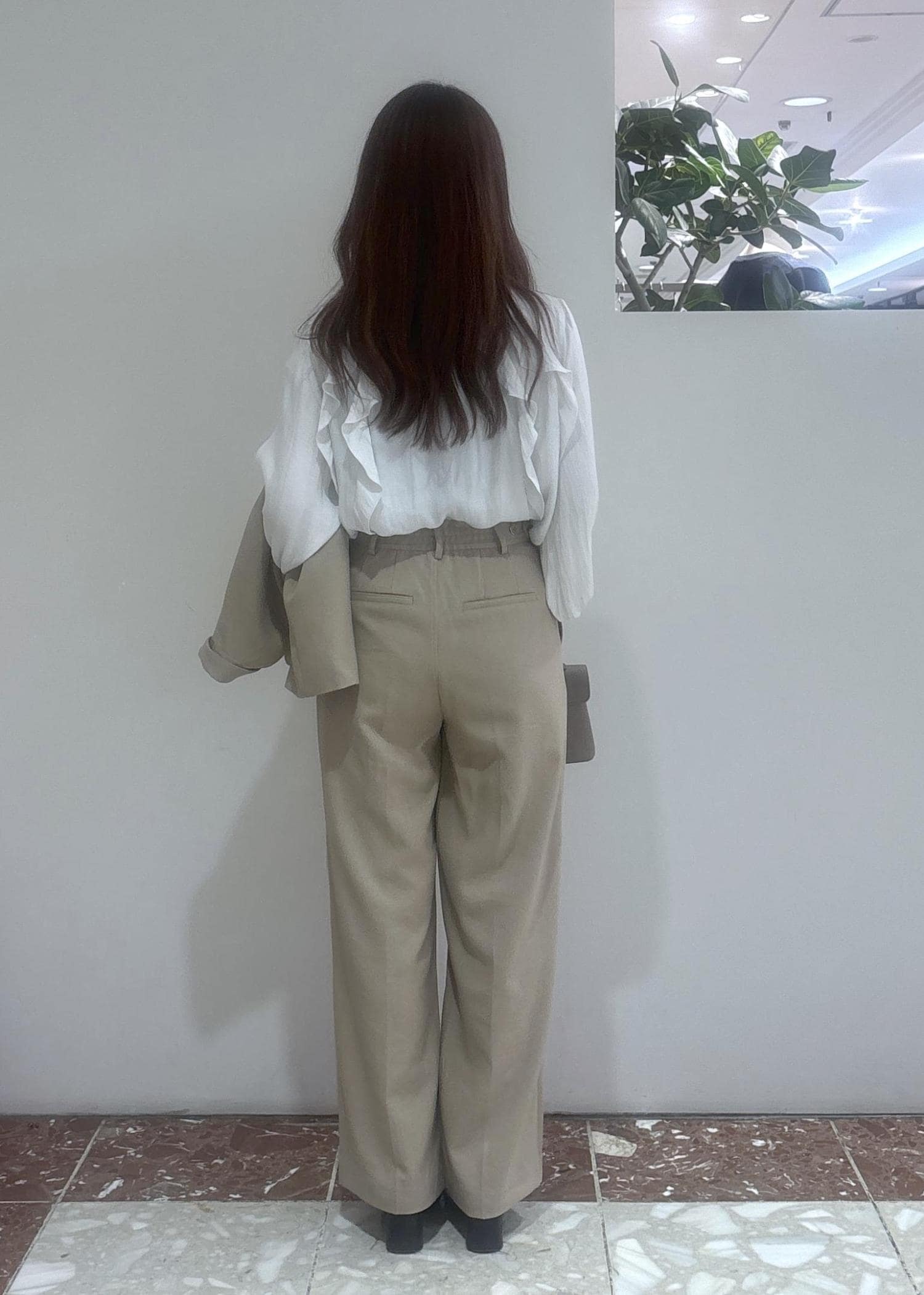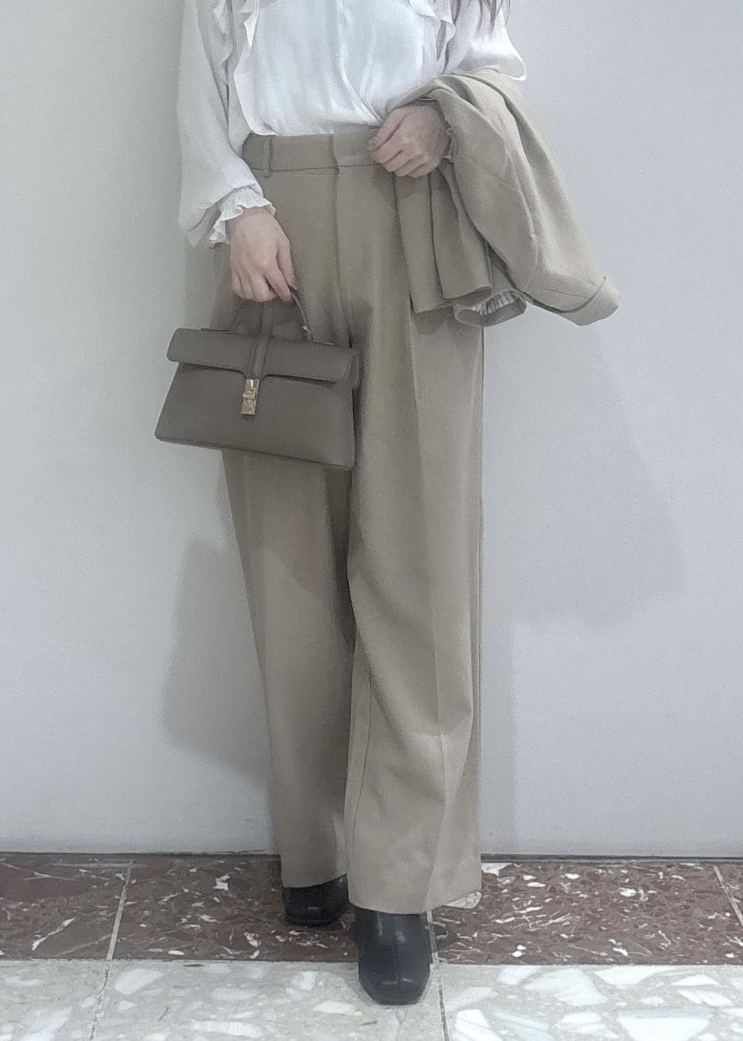 VIS【美easy】ウーリッシュワンタックワイドパンツ【セットアップ対応/洗える】ベージュ / S¥6,589レビュー158cmSサイズ着用。フラットシューズで床につかない位でした!