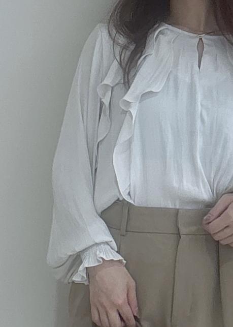 袖もクシュッとワンポイントフリルがデザインされていて重ね着もおすすめです!