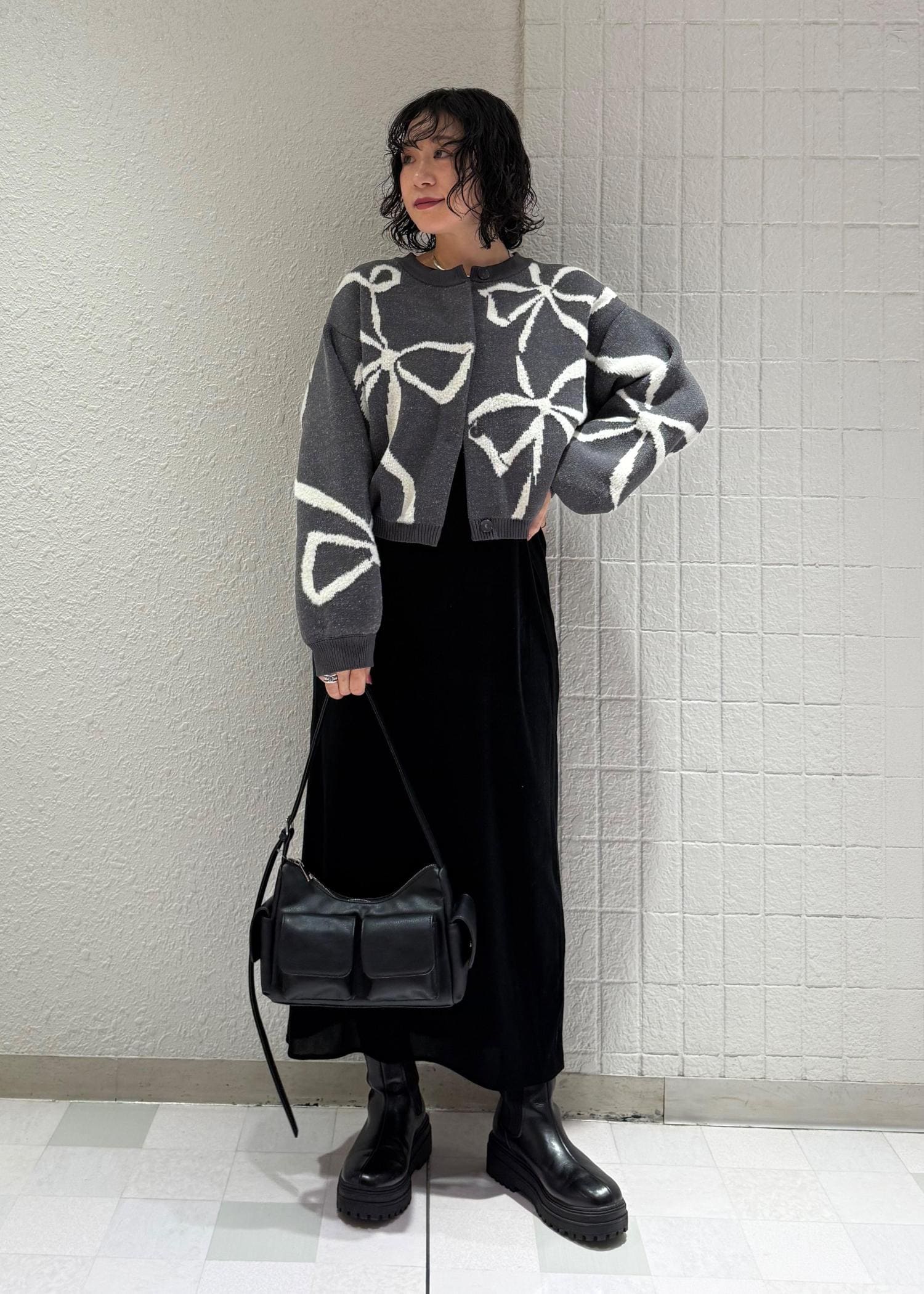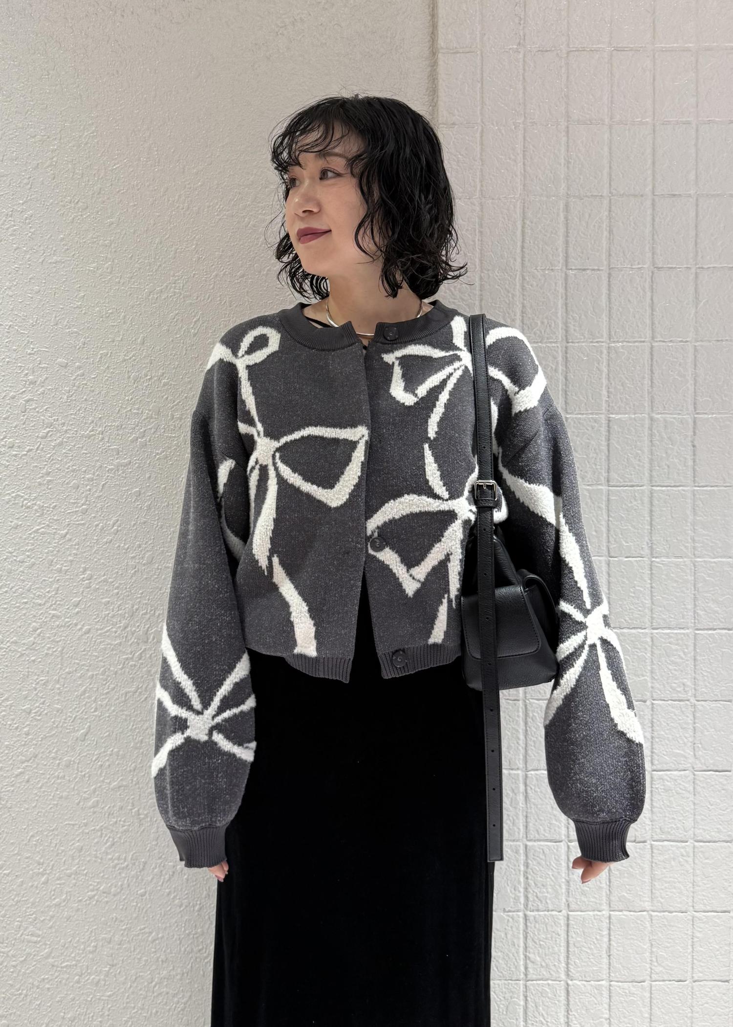 なんと言っても目を引くリボン柄!でも甘くなり過ぎないので大人っぽくコーデできますよ◎ -