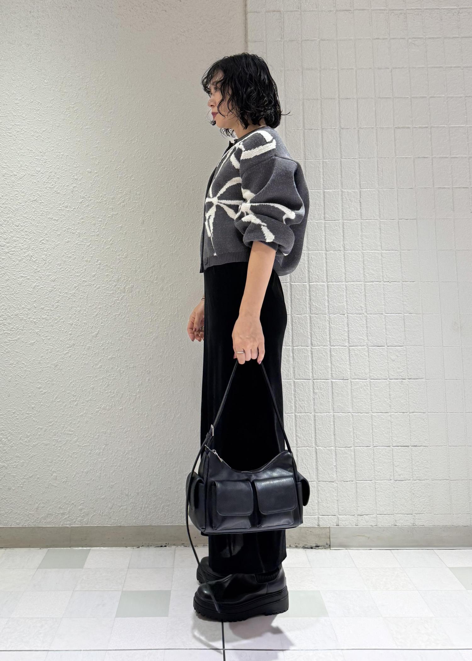 着丈は短めなのでボトムとのバランスもとりやすいカーディガンだと思います◎