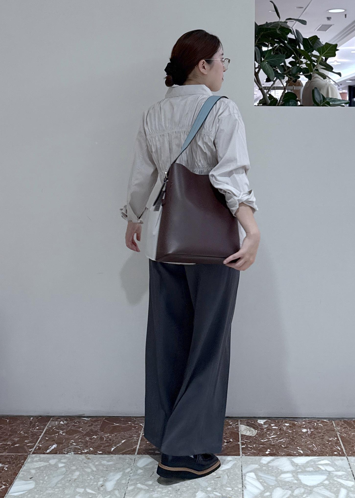 持ち手はリバーシブルで使えて太めのデザインなので肩にもかけやすかったです。
