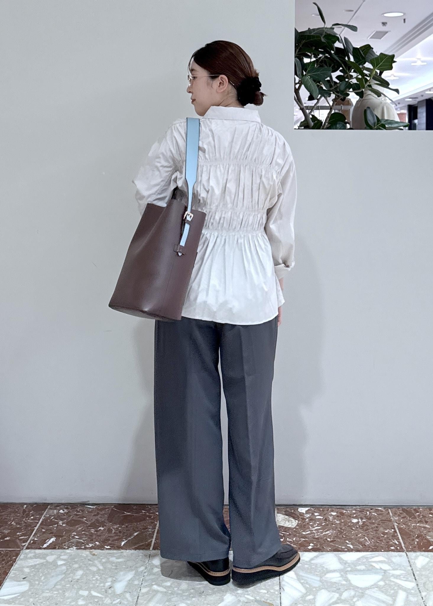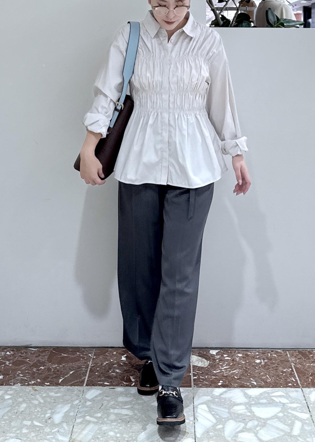 シャーリングのデザインがスッキリ見せ効果があり着痩せします! -