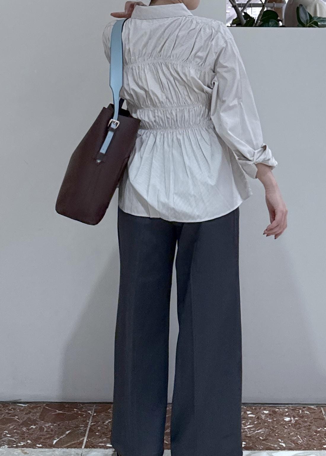 VISシャーリングデザインシャツベージュ系 / F¥5,489レビュー定番人気のデザインで、お仕事でも使えて普段着使いもできる優秀アイテムです。