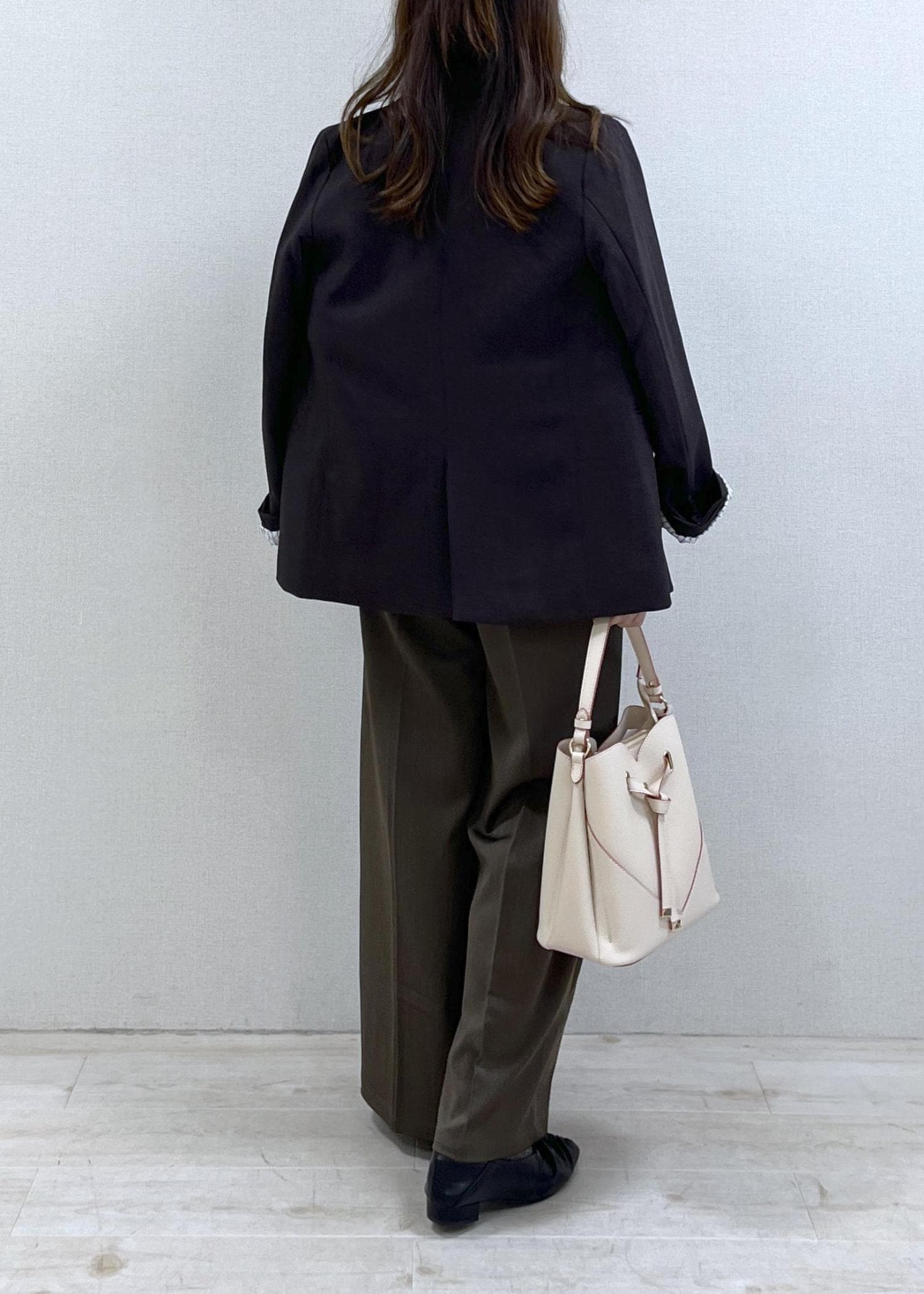 VIS【美easy】ウーリッシュダブルブレストテーラードジャケット【セットアップ対応/洗える】ダークブラウン / S¥8,899レビュー152cmでSサイズ着用し、ジャストサイズ。ぴったり!な感じのサイズ感だったので、ニットや厚手のトップスになるような時期ですと、キツめに感じるかもしれません。個人的にはMサイズでも大丈夫そうでした。裏地付きの、きちんとジャケットはどんなスタイルにも使える万能アイテム。お尻が隠れる丈ですが、着られることなく小柄さんにも上手に着こなせます。