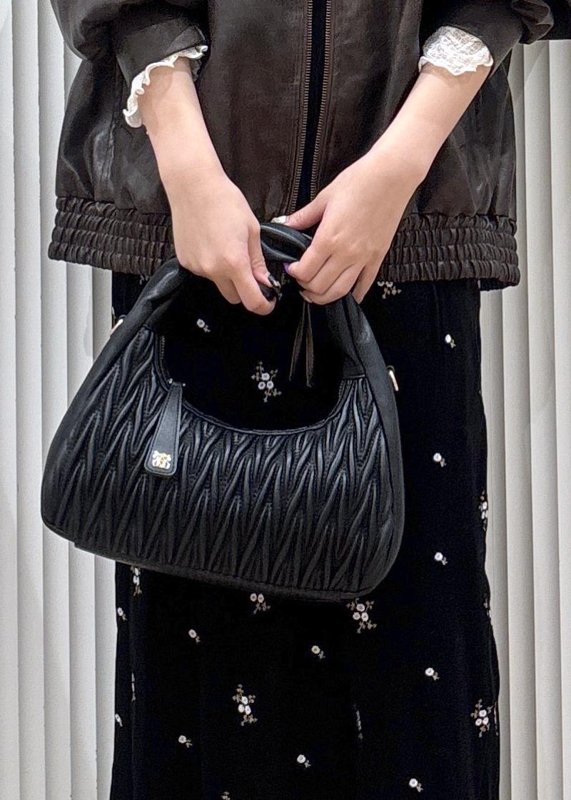 VIS【2WAY】ねじりハンドルキルティングバッグブラック / F¥7,909レビュー柔らかい生地感ではありますが形がしっかりしているので型崩れしにくいデザインです!キルティングなので形はシンプルですが持つだけで華やかさがアップします。