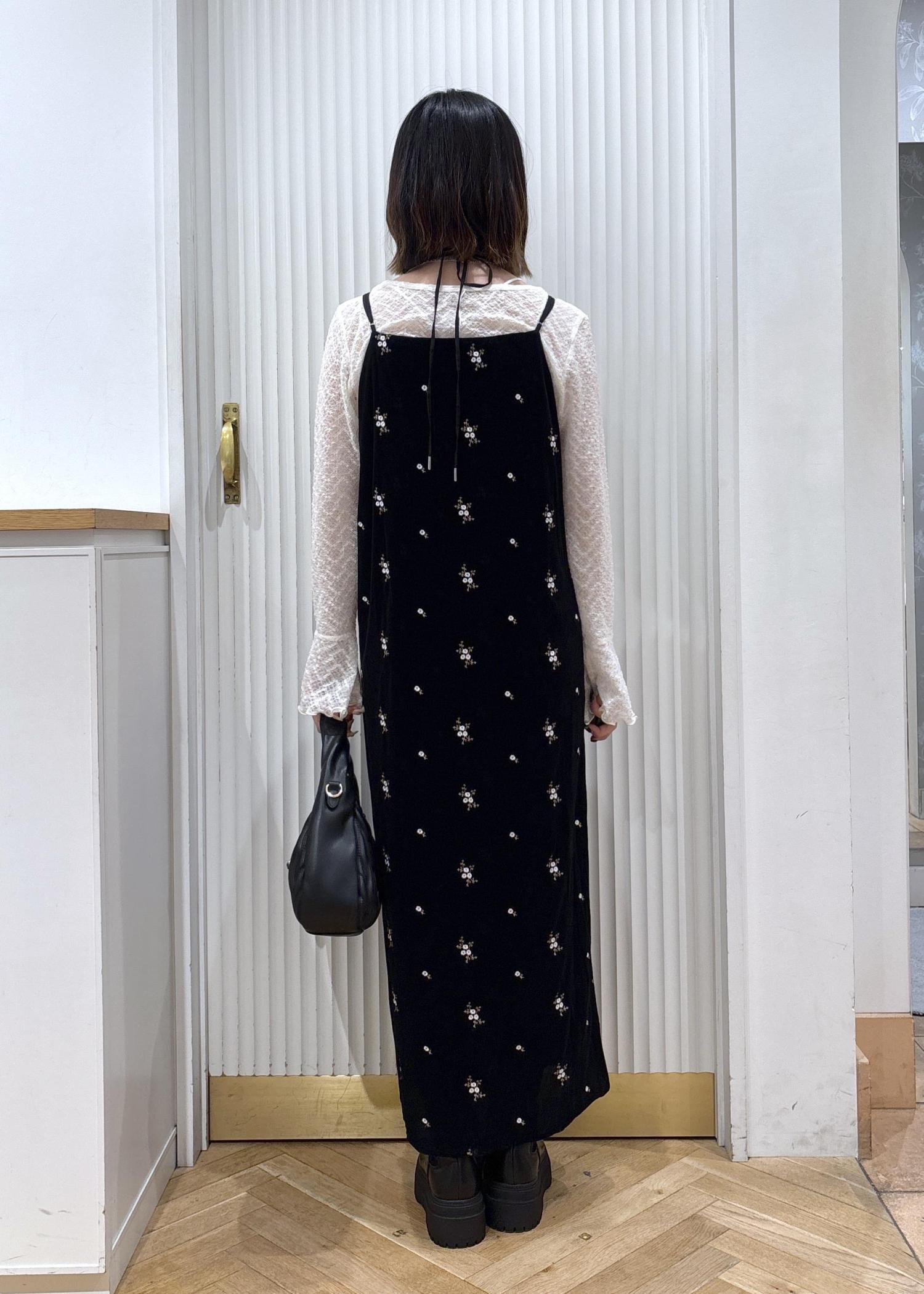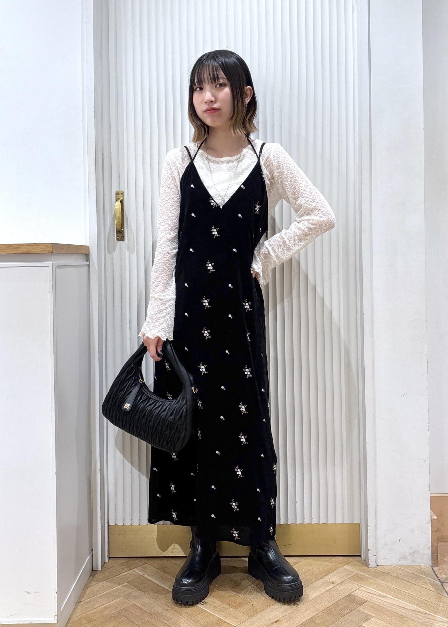 VIS刺繍アソートベロアキャミワンピース/2WAYブラック系 / F¥8,899レビュー153センチ着用で足首くらいの長さでした。肩紐で調節できるので低身長さんでも問題なく着れます!体のラインを拾いすぎないアイラインで程よく体型カバーされます。ベロア素材で伸縮性がありデザインもシンプルなので秋冬大活躍間違いなしのワンピースです!