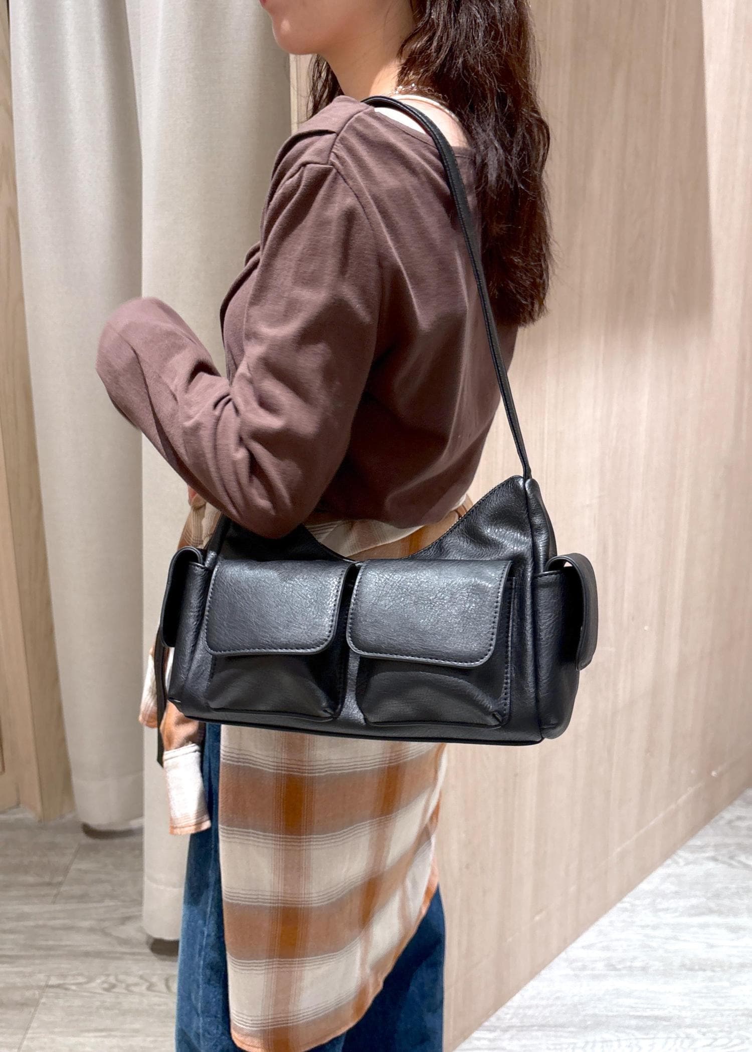 VIS【2WAY】ビンテージ合皮クアトロポケットショルダーバッグブラック / F¥6,919レビュービンテージ風の素材が秋っぽくて可愛い◎