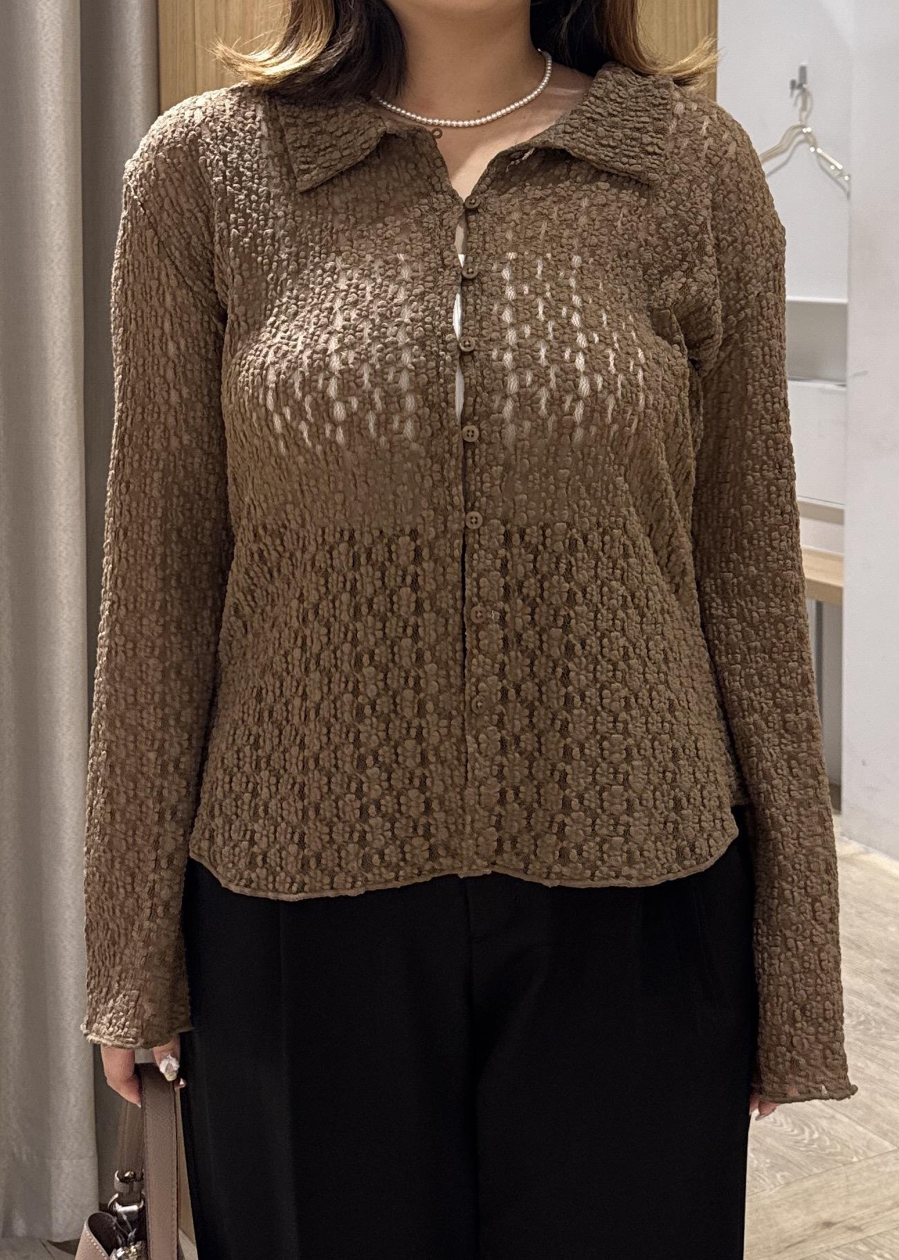 VISレースポロ襟カーディガンブラウン系 / F¥3,842レビュー柔らかい素材感で着心地◎