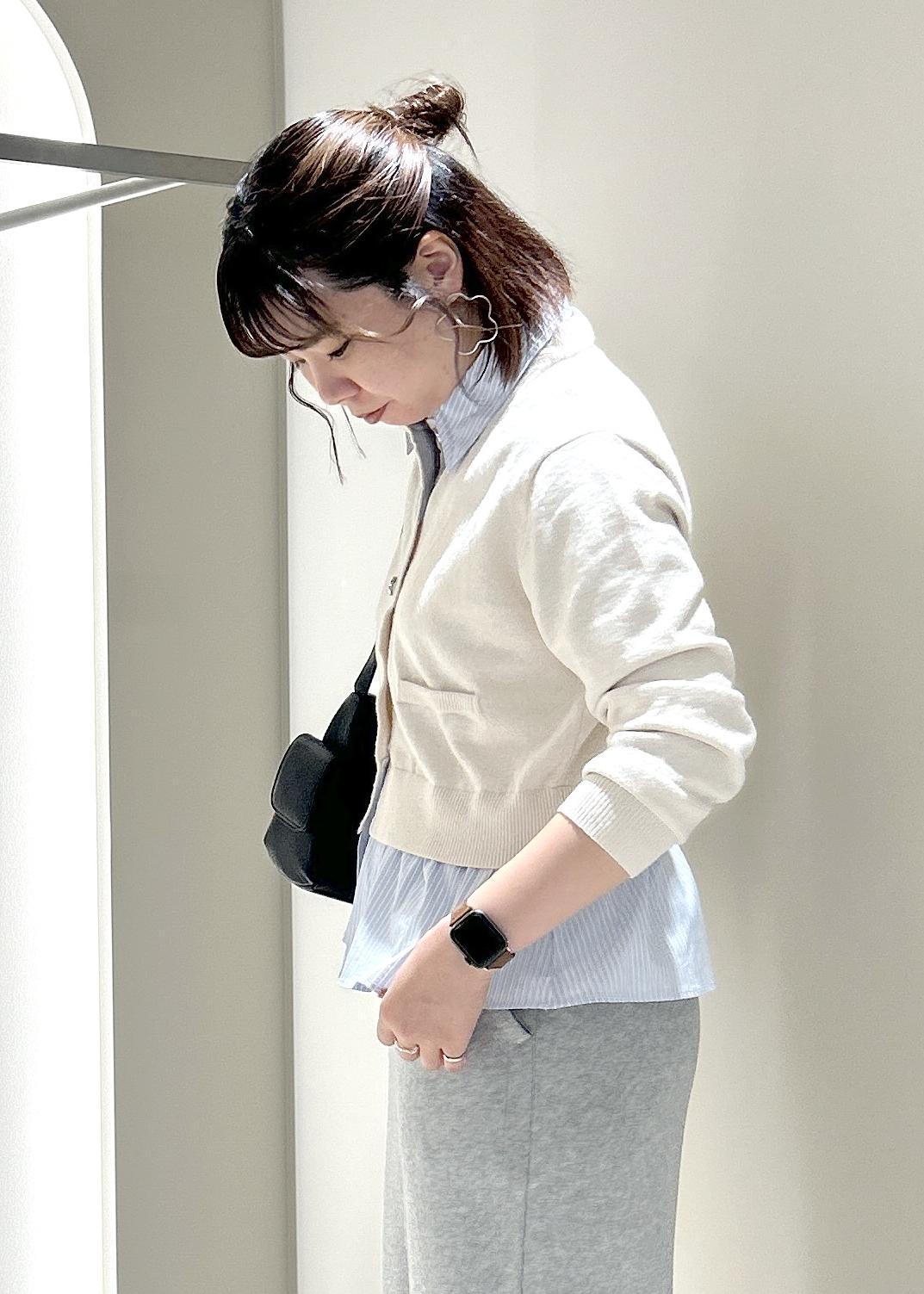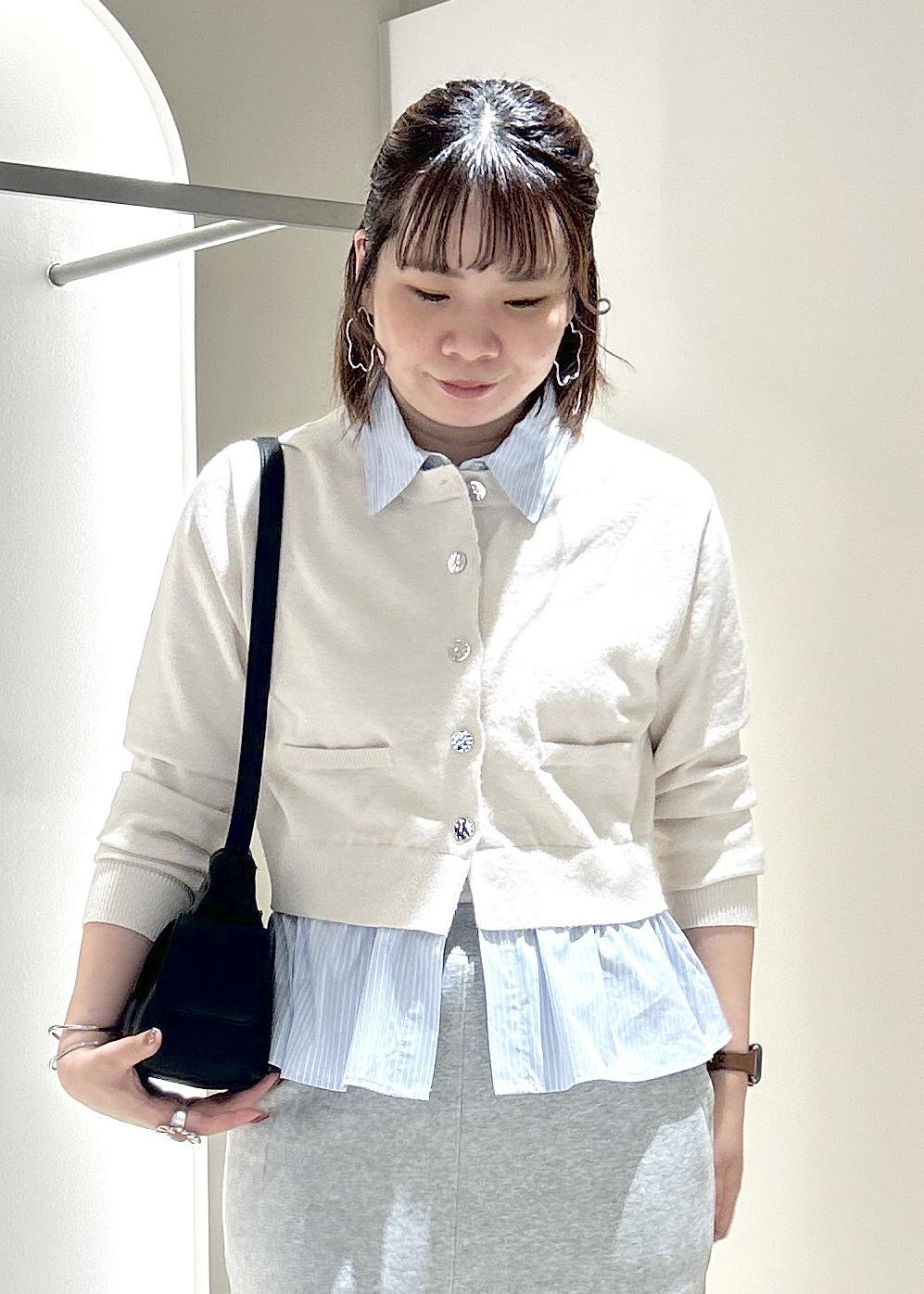 VISシャツレイヤード風メタルボタンカーディガンキナリ / F¥6,589レビュー163cmでシャツ裾がお尻半分くらい隠れる着丈です。