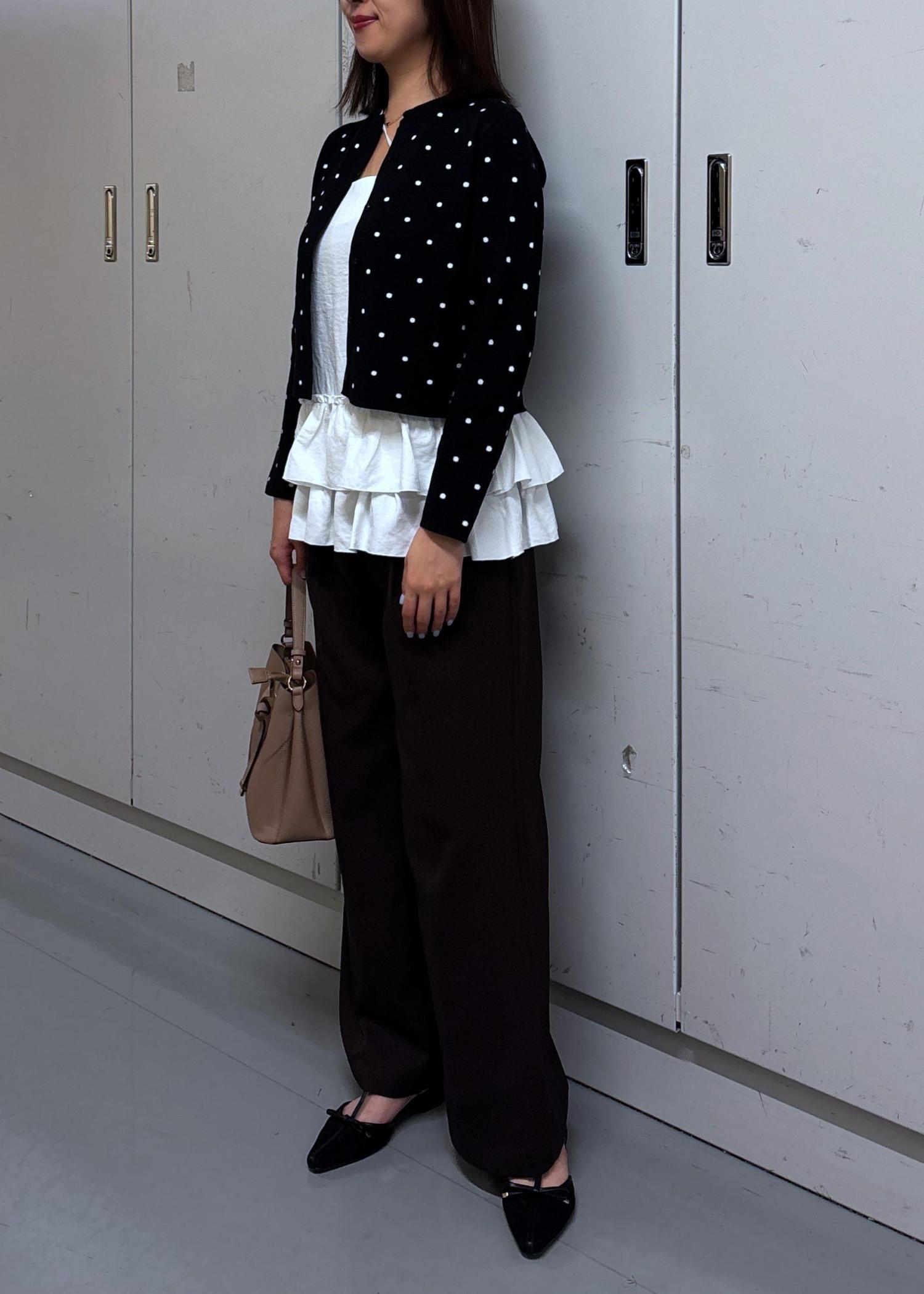 小さなドットが可愛いカーディガンです
