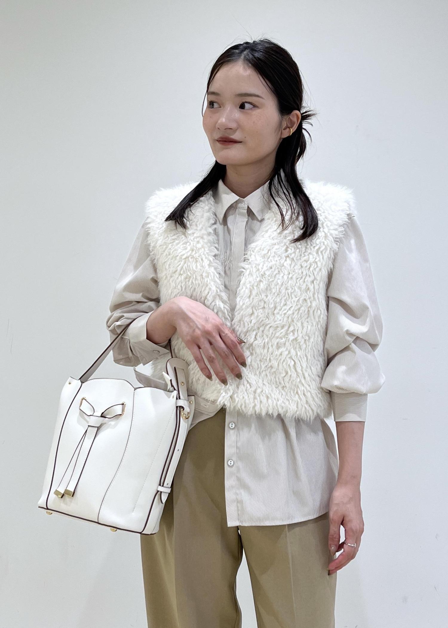 VISアソートファーショートベストキナリ / F¥8,899レビュー158㎝でFサイズ着用。