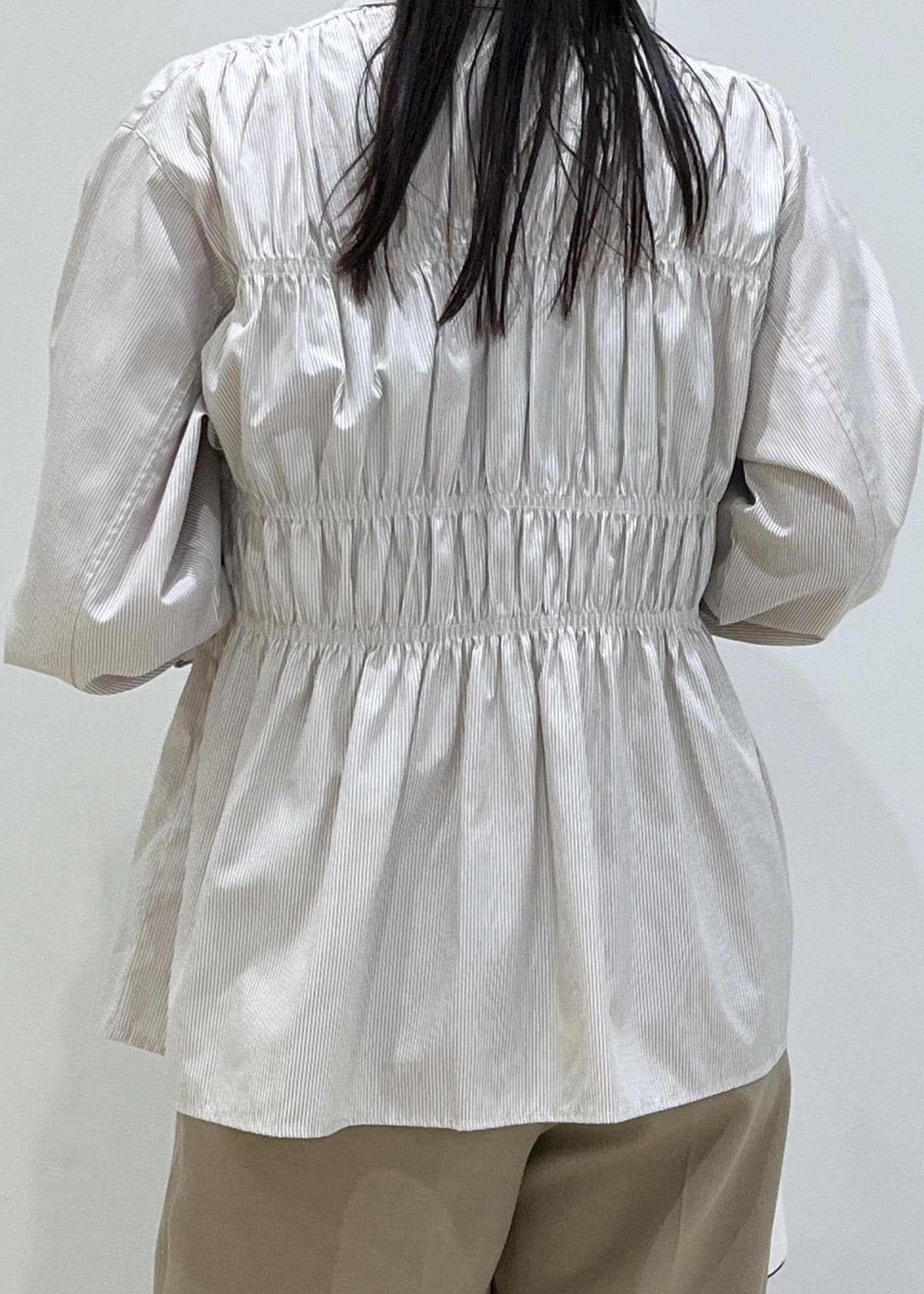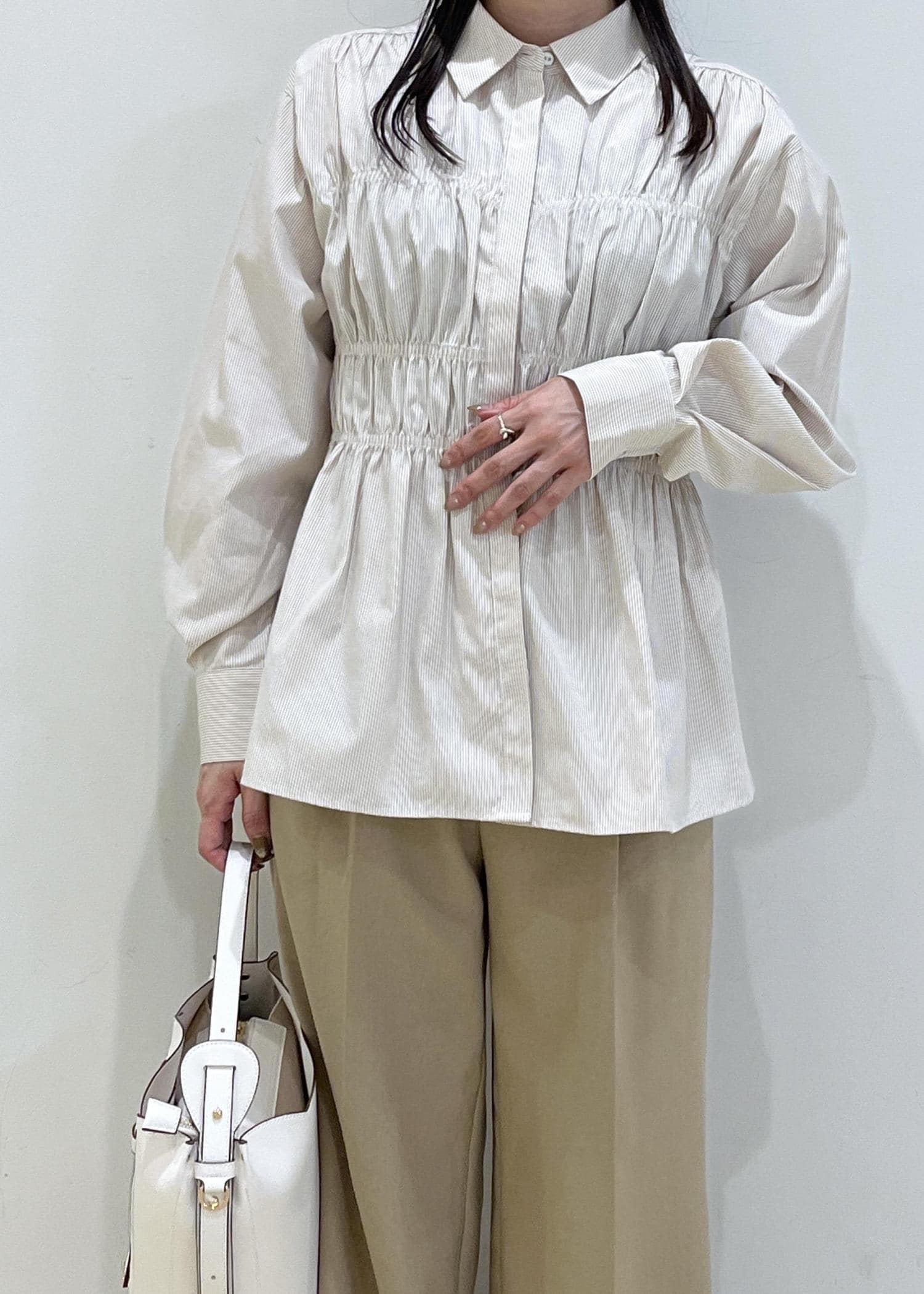 VISシャーリングデザインシャツベージュ系 / F¥5,489レビュー158㎝でFサイズ着用。