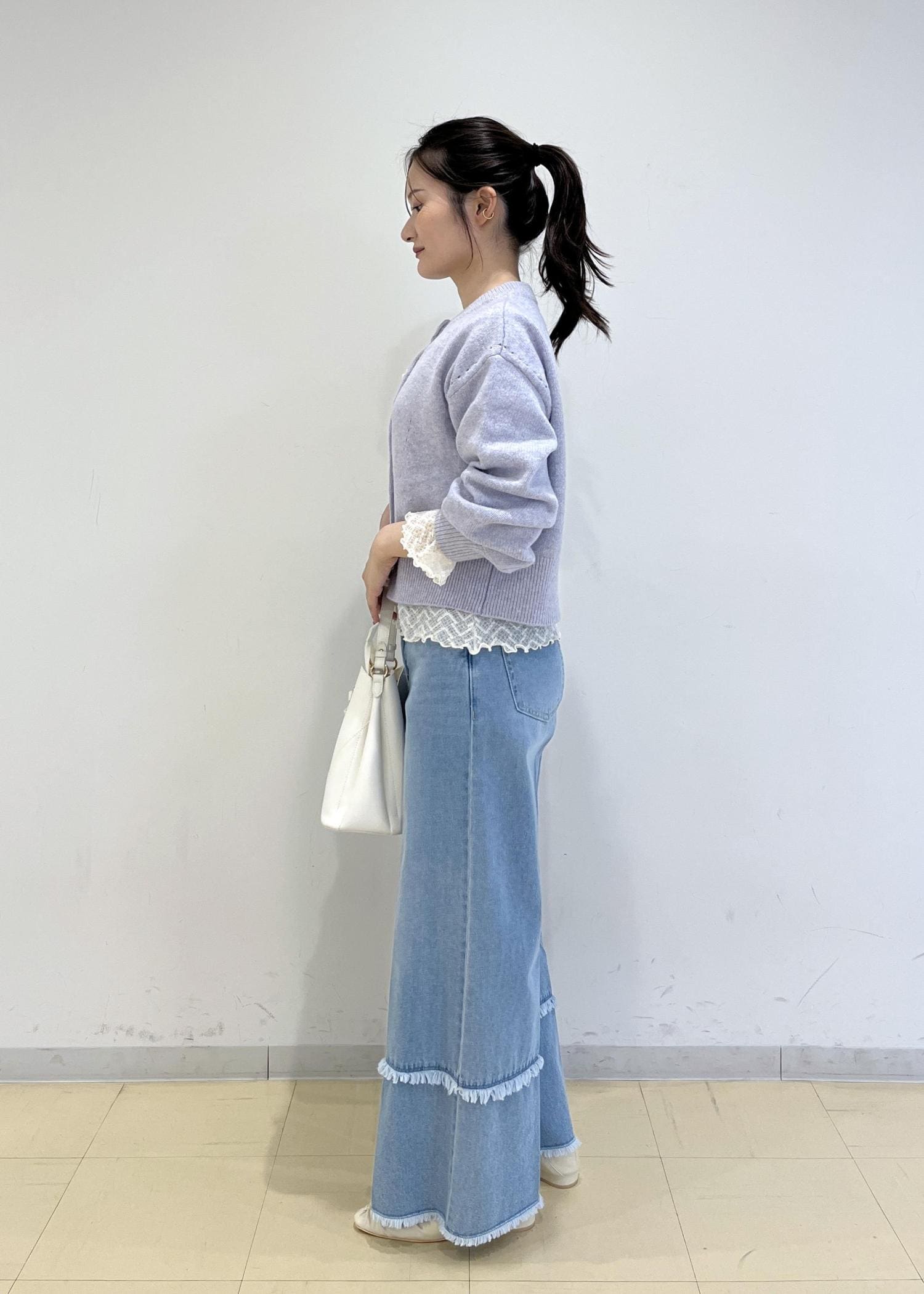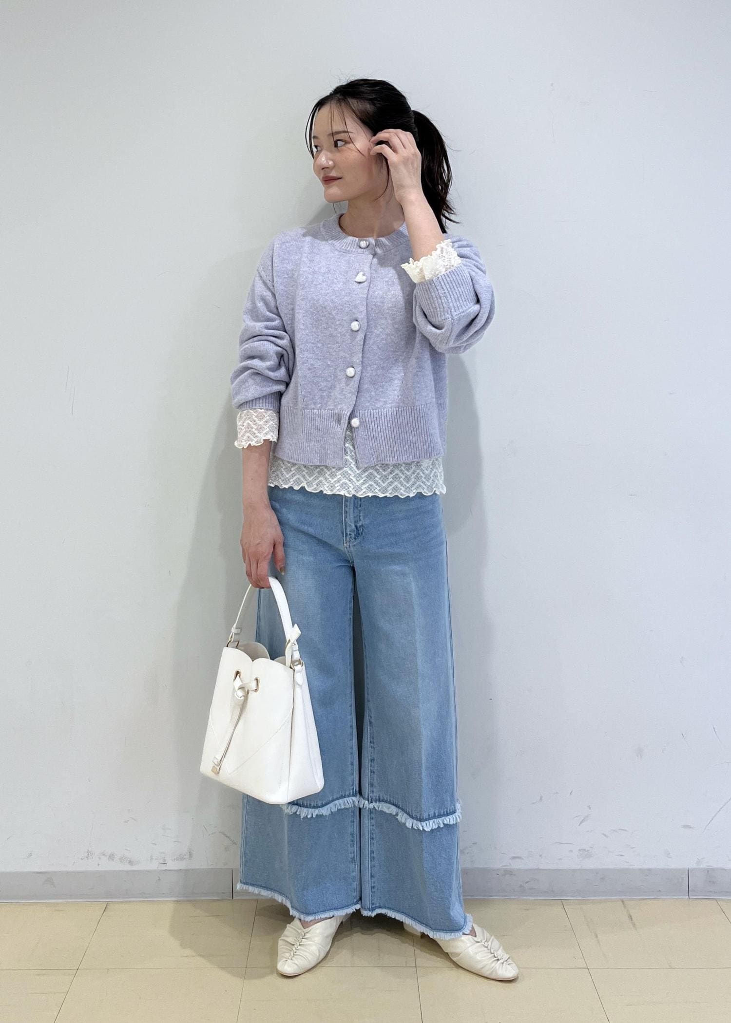 大人気カーデで作る、フェミニンカジュアルコーデ