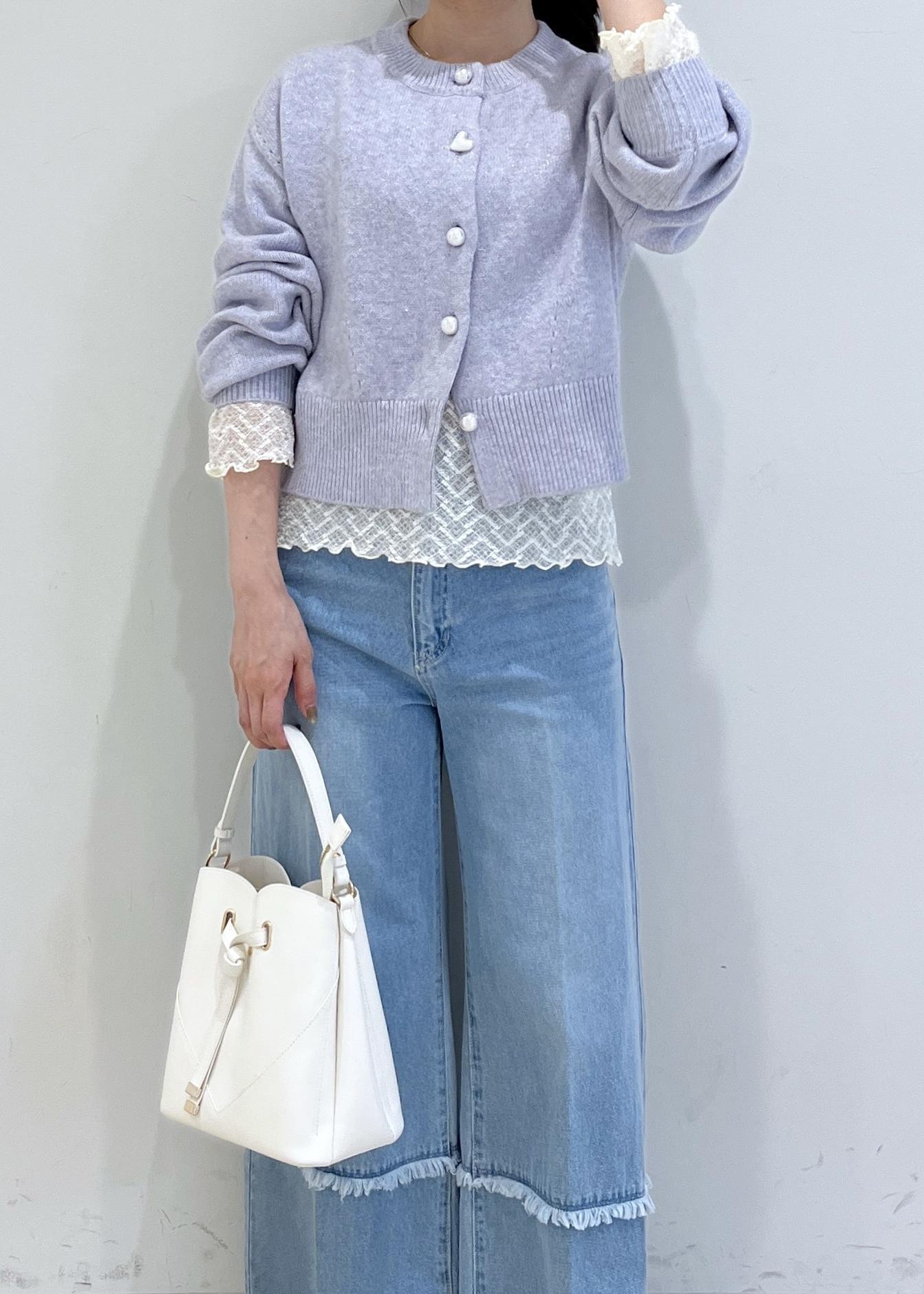 VISハートアソートパール釦ラメミックスカーディガン/イージーケア・一部WEB限定カラーパープル系 / F¥5,489レビュー158㎝/Fサイズ着用。