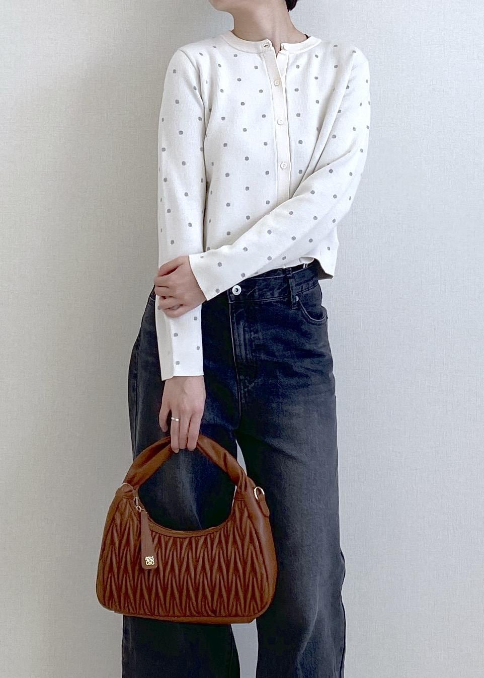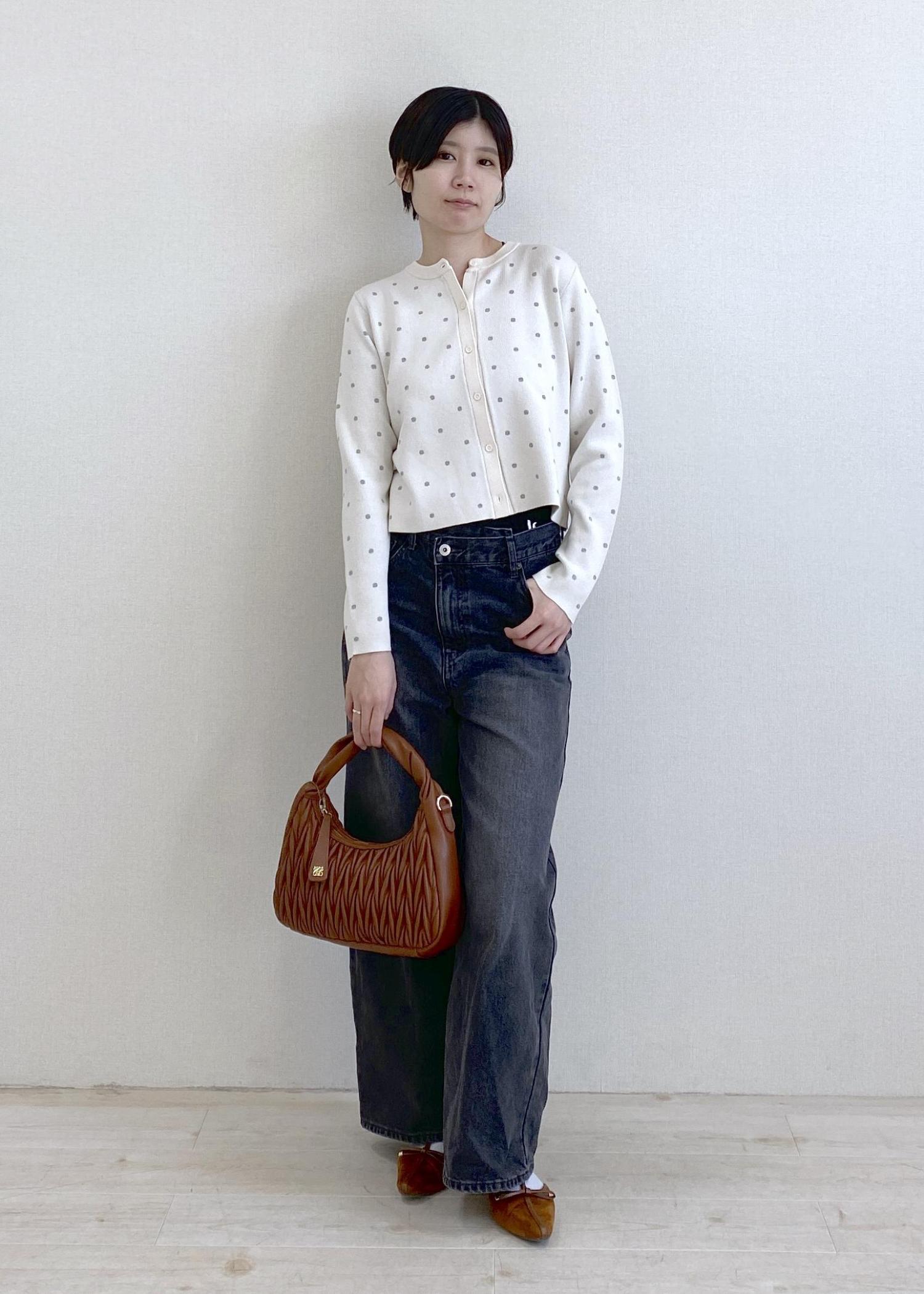 VISドットジャガードカーディガンキナリ系 / F¥5,929レビュー短すぎない丈感でボトムスとのバランスが取りやすいです。