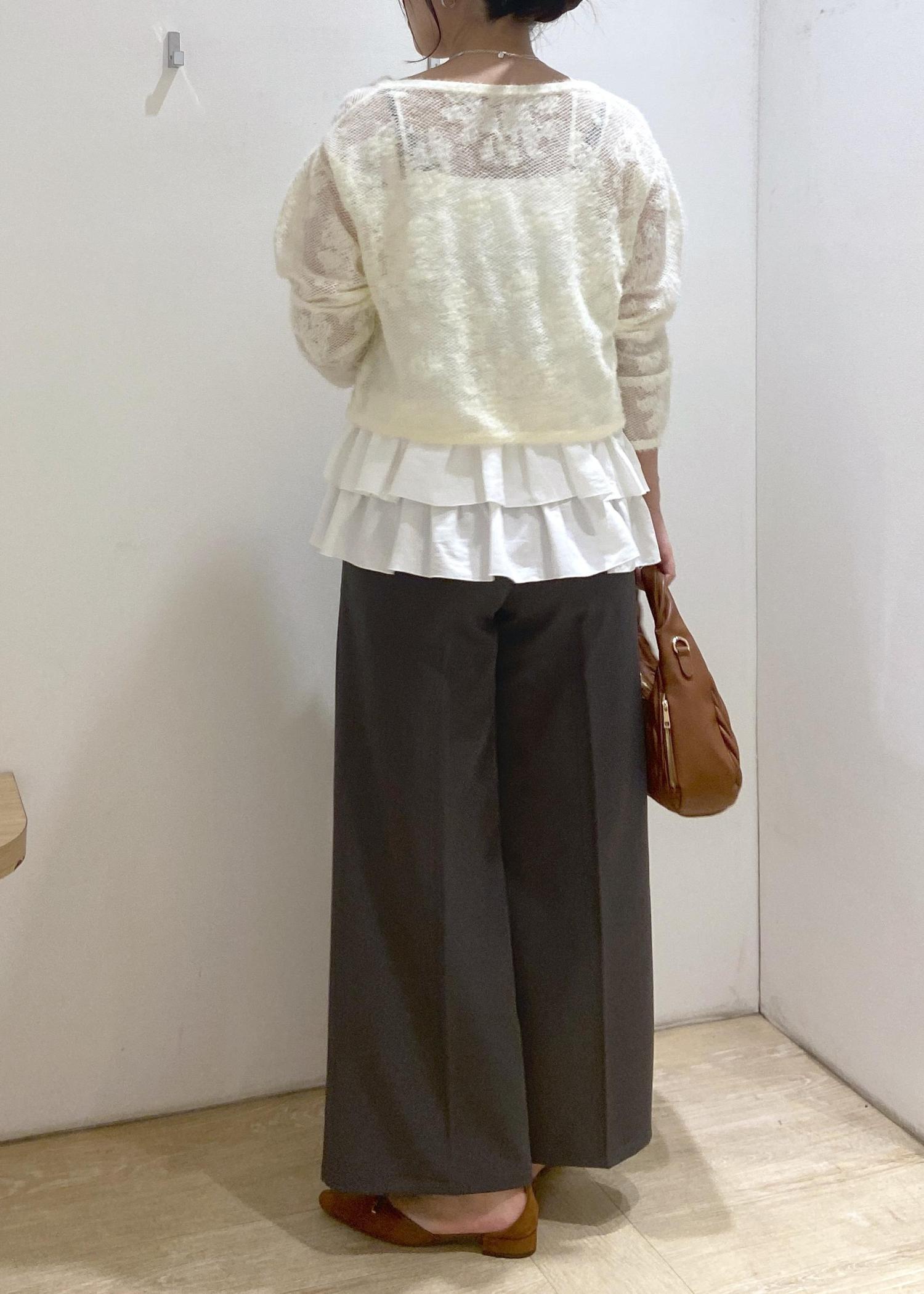 白はやや透け感があるので、同系色のインナー着用をおすすめします。