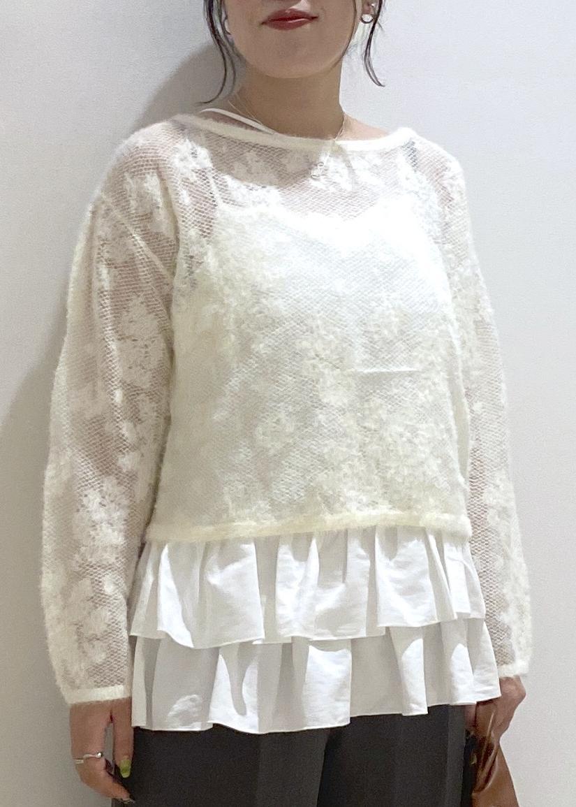 VISフラワーモチーフフェザーシアーニットオフホワイト / F¥3,842レビュー身体のラインを拾いにくいゆったりシルエットです。